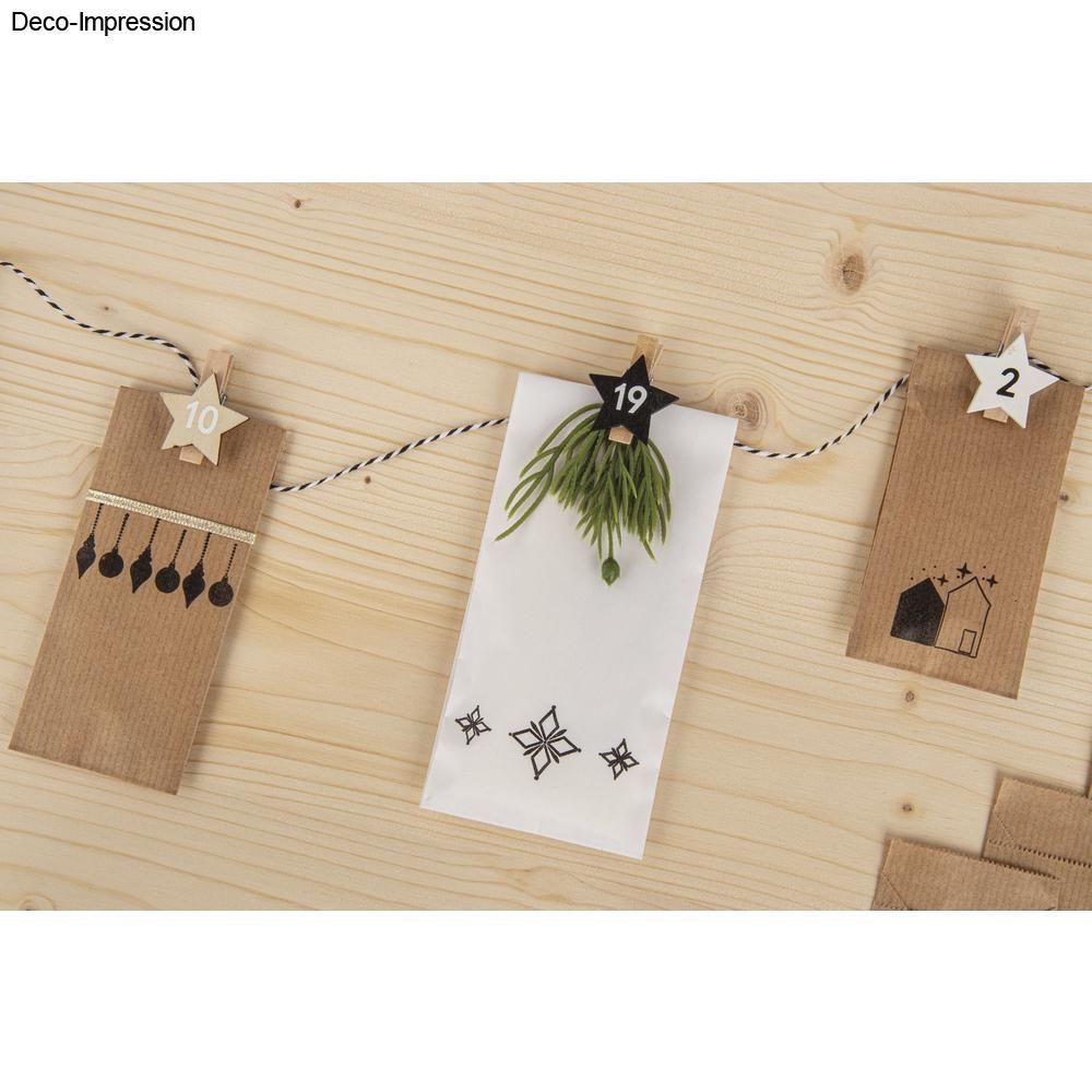 - Motivgrößen: z.B. Zahl 24 ca. 1,7 x 1,7 cm, Motiv "Baum mit Stern" ca. 2,4 x 5,5 cm
