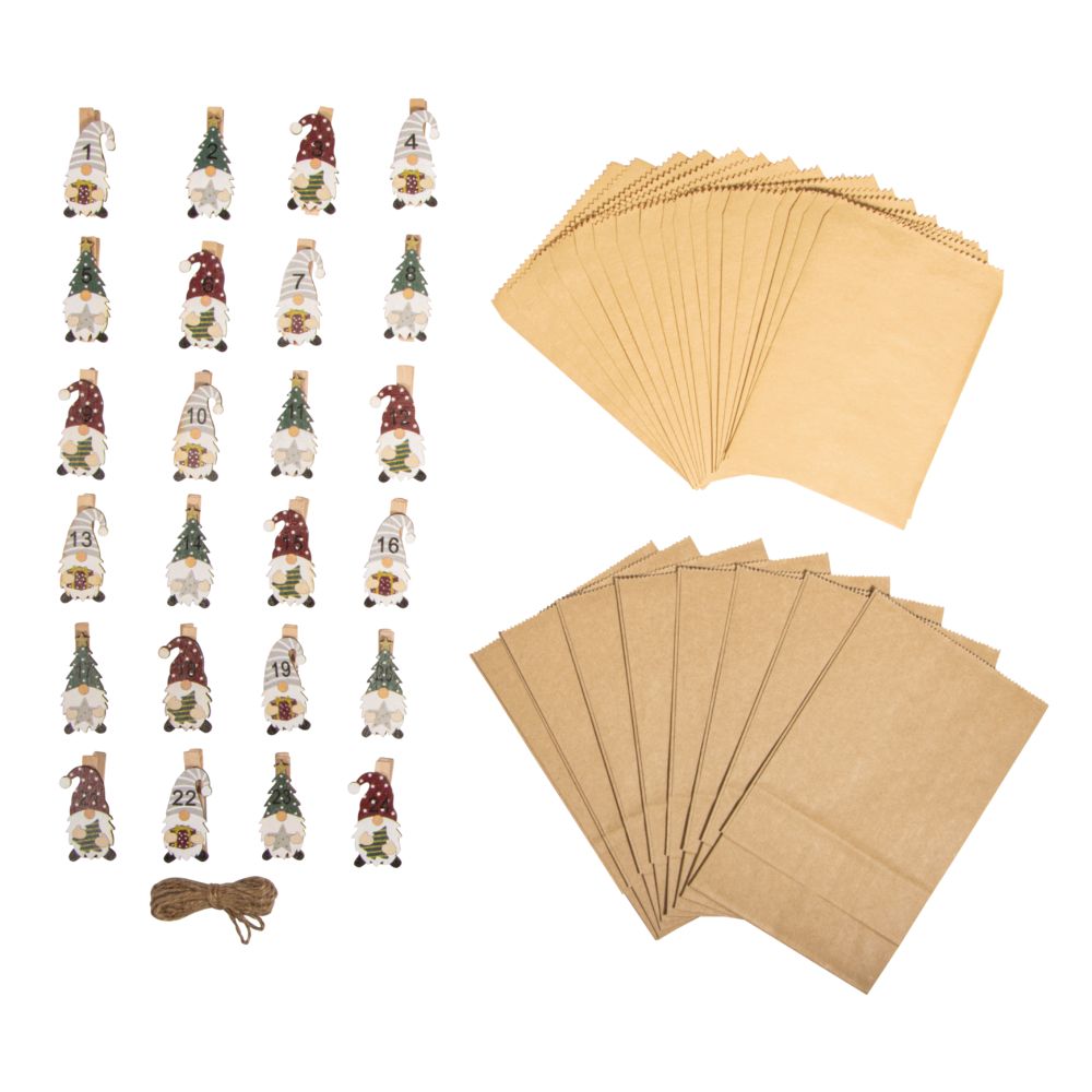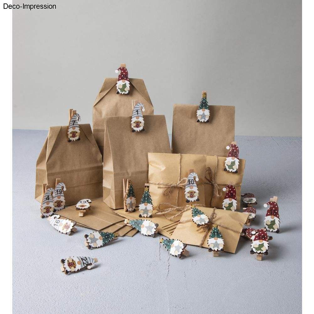 - 24 Holz-Adventskalenderzahlen, Wichtel auf Klammern (1 - 24)