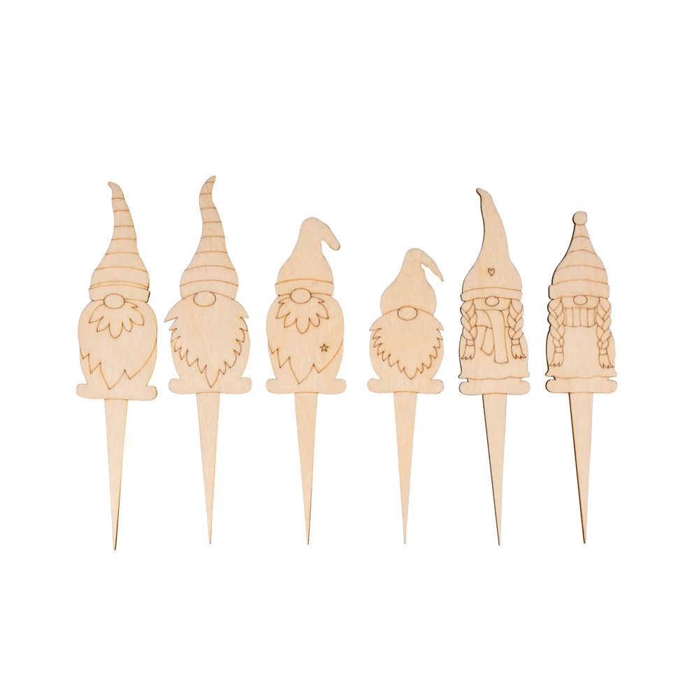 Süße kleine Wichtel-Stecker verzieren deine Blumentöpfe, Adventskränze, Geschenkverpackungen und vieles mehr. Liebevoll bemalt wird daraus etwas ganz Persönliches.