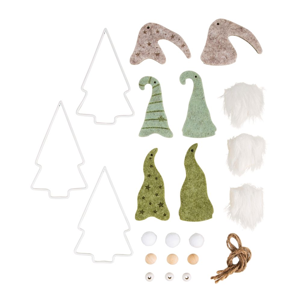 Sind sie nicht süß, die drei Wichtelmännchen mit Kuschelbart, Filzmütze und Tannenbaum? Das DIY-Set enthält, was du dazu brauchst. Die Teile werden zusammengeklebt, Aufhänger dran, fertig! Inhalt: