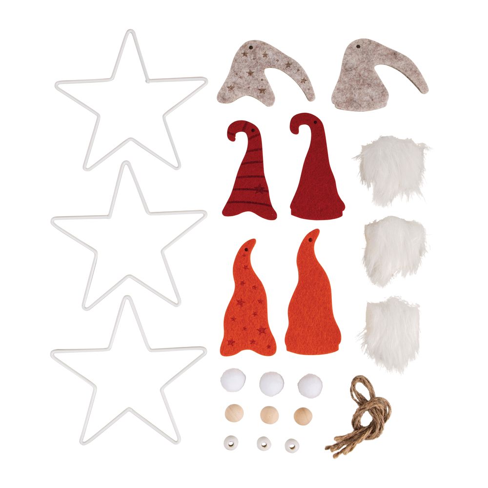 Sind sie nicht süß, die drei Wichtelmännchen mit Kuschelbart, Filzmütze und Stern? Das DIY-Set enthält, was du dazu brauchst. Die Teile werden zusammengeklebt, Aufhänger dran, fertig! Inhalt: