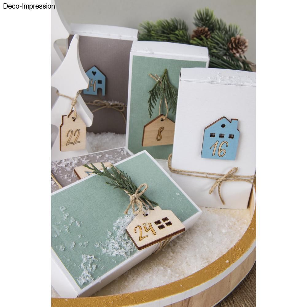 24 spannende Vorweihnachtstage schenkst du deinen Lieben mit einem selbstgebastelten Adventskalender. Die Holzhäuschen mit Zahlen 1 - 24 und Loch können dekorativ mit der Hanfkordel angehängt werden. Inhalt: 24 Holzhäuschen, verschiedene Größen: