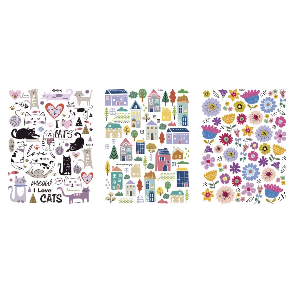 "Rub on" Transfer" - Sticker mit unterschiedlichen Häuser-, Katzen- und Blütenmotiven sind... mehr