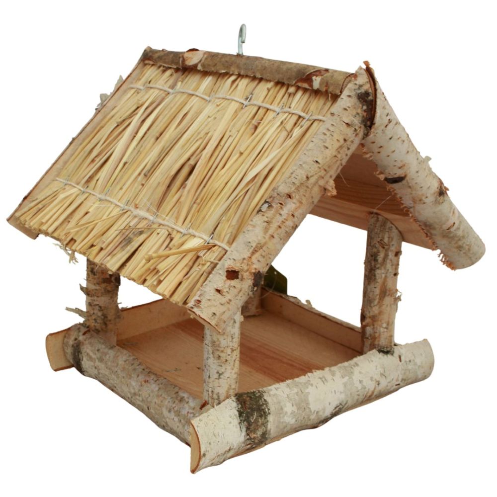 Vogelhaus eckig Reetdach Birke 26 x 25 cm