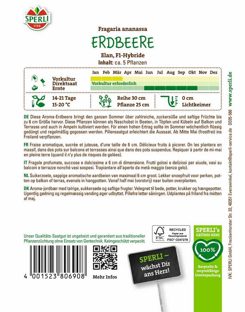 Herstellerinformation zu "Erdbeere Elan F1 Pillensaat"