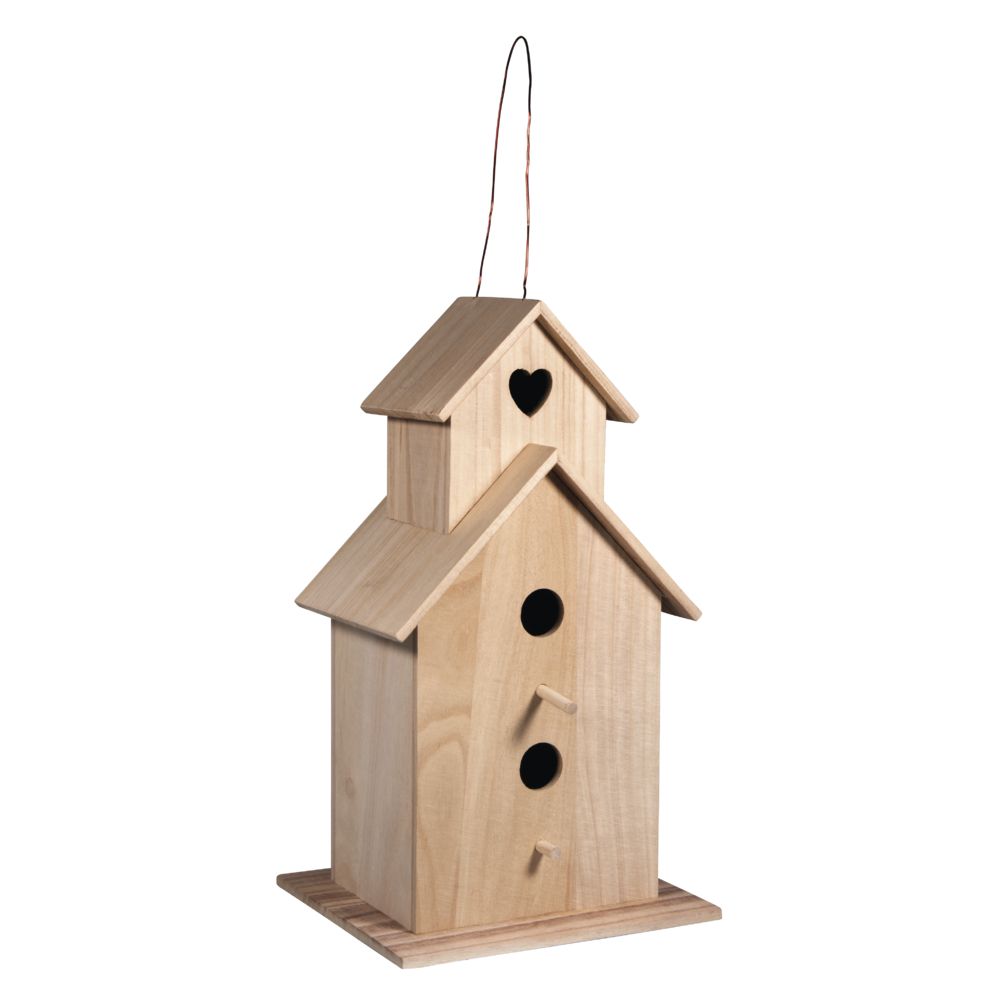 Schenke den Vögeln ein neues Eigenheim! Gestalte den Look ganz nach deinem Geschmack: Rustikal und natürlich wird es, wenn du mit dem Brandmal-Kolben arbeitest oder Ast-Stücke und Holz- Rindenstücke aufklebst; Leuchtend bunt und wetterfest wird's durch einen Anstrich mit Patio-Paint-Farben; Oder magst du lieber grafisch klare Mosaikarbeiten? Die Einfluglöcher haben einen Durchmesser von 3 cm und das Holz stammt vom Blauglockenbaum.