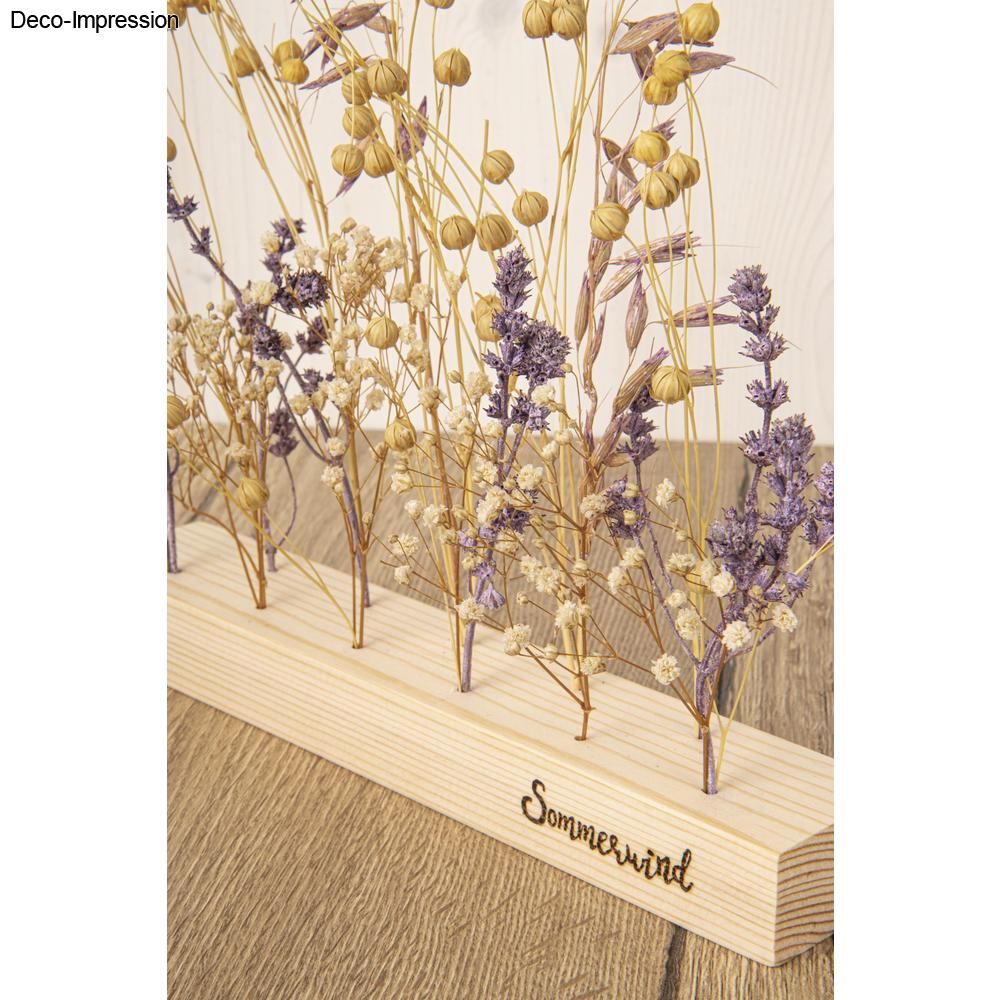 Dekorationen aus natürlichen Materialien sind momentan äußerst angesagt. Wenn du die Vielfalt und Harmonie von Naturfarben liebst, wird diese Holz-Steckleiste, geschmückt mit Trockenblüten und Gräsern, perfekt für dich sein.