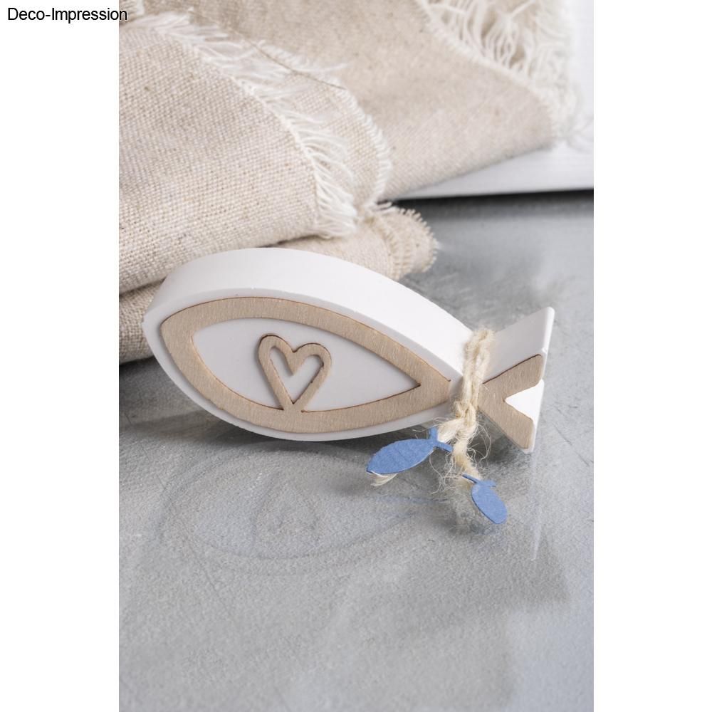 Der Fisch als Motiv wird oft für Anlass-Dekorationen wie z.B. Taufe oder Kommunion verwendet. Aber in Kombination mit Booten, Muscheln und Sand wird Meerliebe spürbar und macht so Lust auf den Sommer.