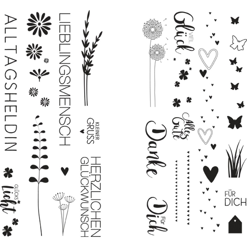 - Transferfolie mit verschiedenen Designmotiven und Texten