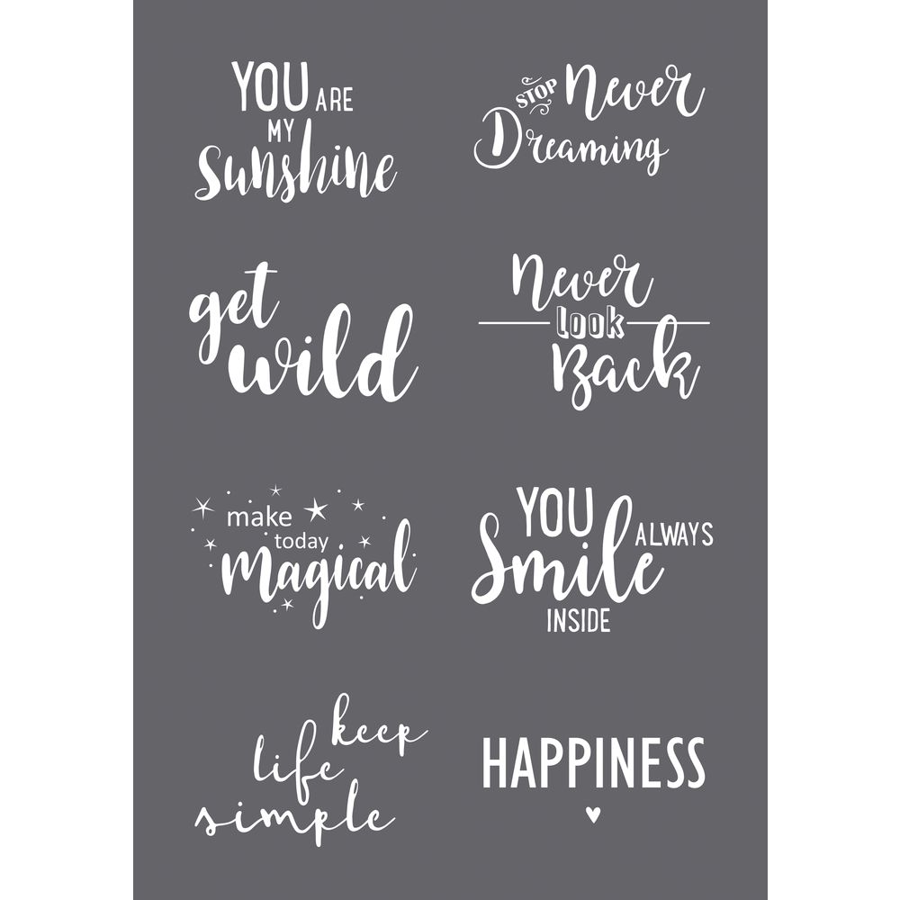 Setze Statements! Mit dieser Schablone und Farbe verzierst du Untergründe wie Textiles, Holz, Keilrahmen, Papier, Beton, Terrakotta u.v.m. mit tollen Statements und individuellen Texten.