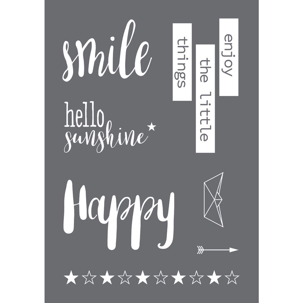 Schablonierte Statements sind ein toller Hingucker für Textilien und viele weiteren Untergründe. Die selbstklebende Siebdruck-Schablone überzeugt durch filigrane Schriften und einen tollen Look.