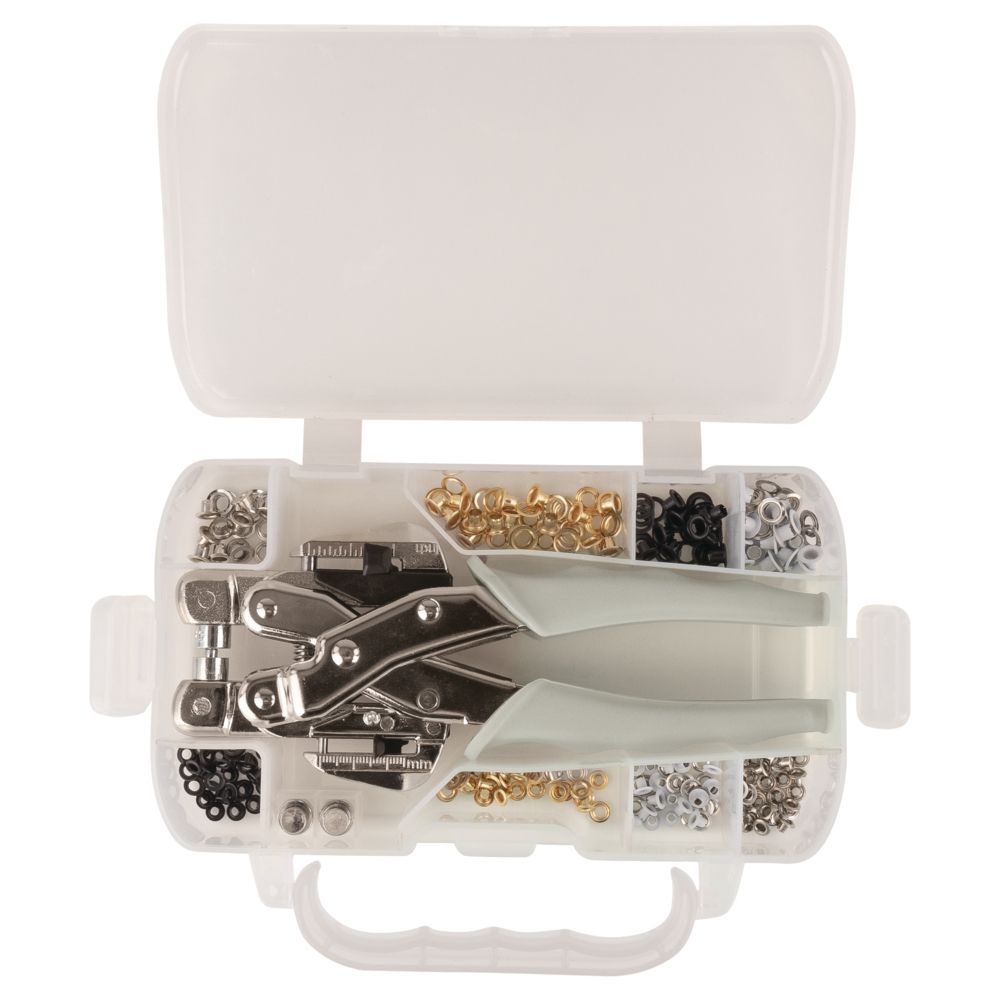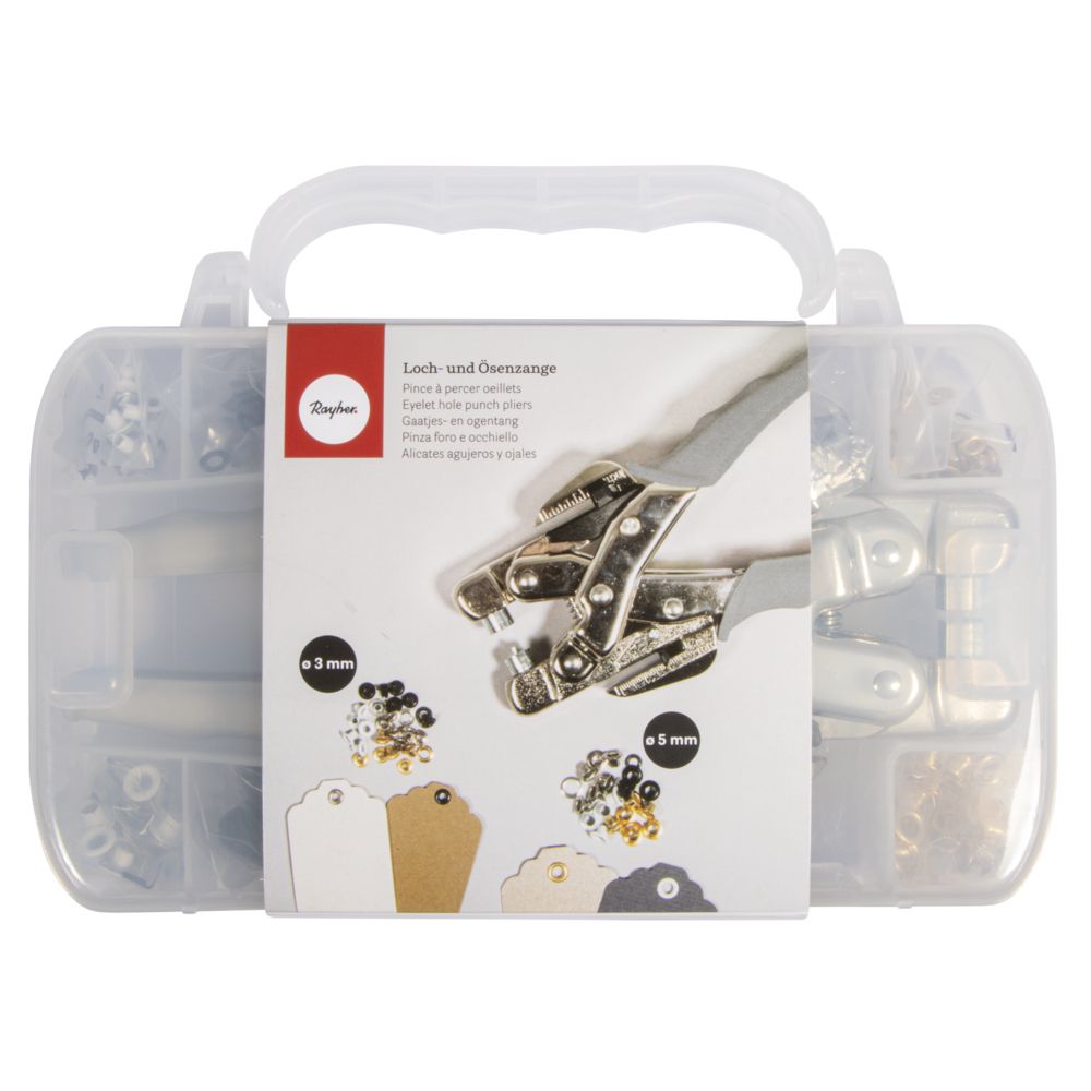 - Inklusiv je 80 Ösen, 3 mm ø und 5 mm ø (gesamt 160 Ösen)