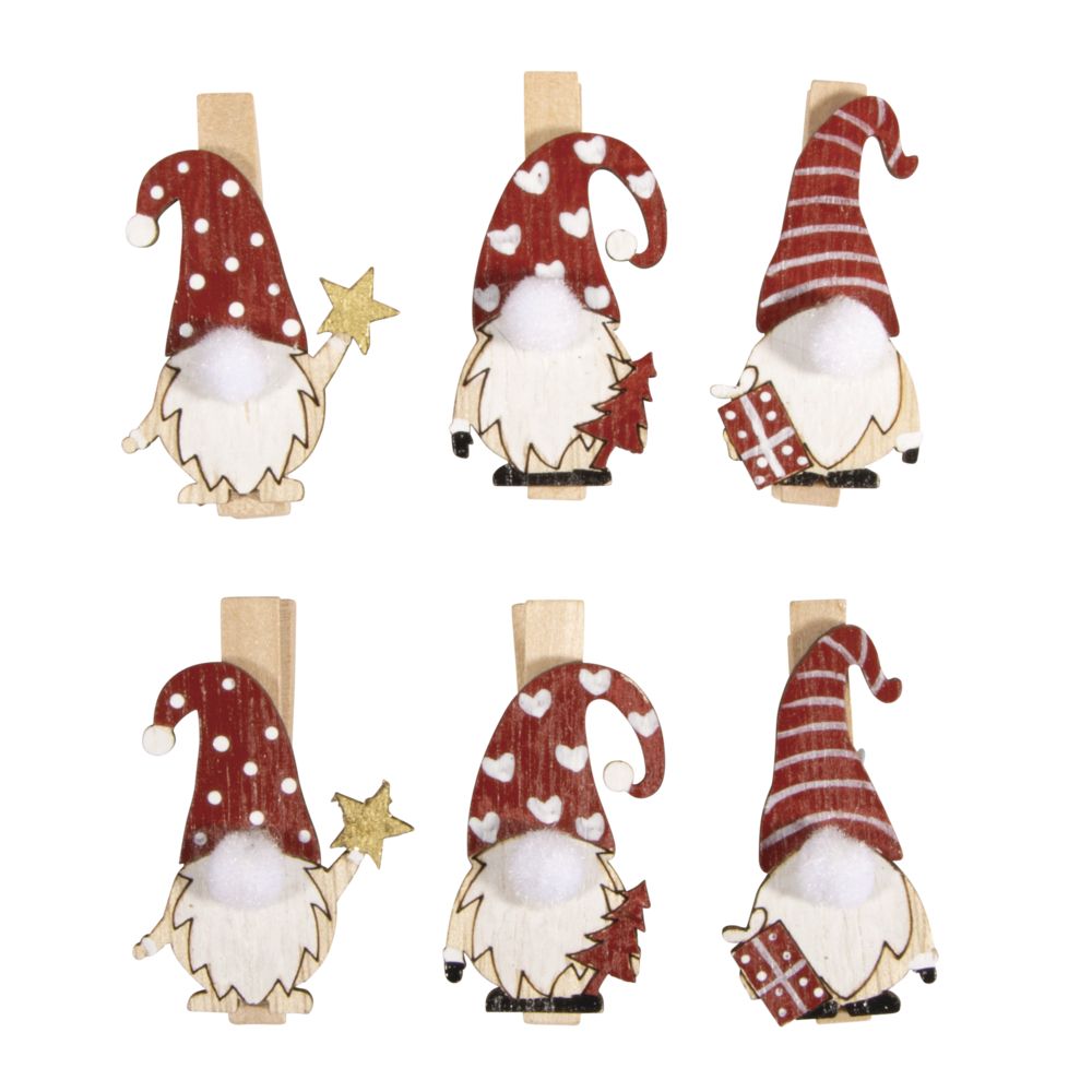 - 6 Holzklammern mit verschiedenen Wichteln aus Holz