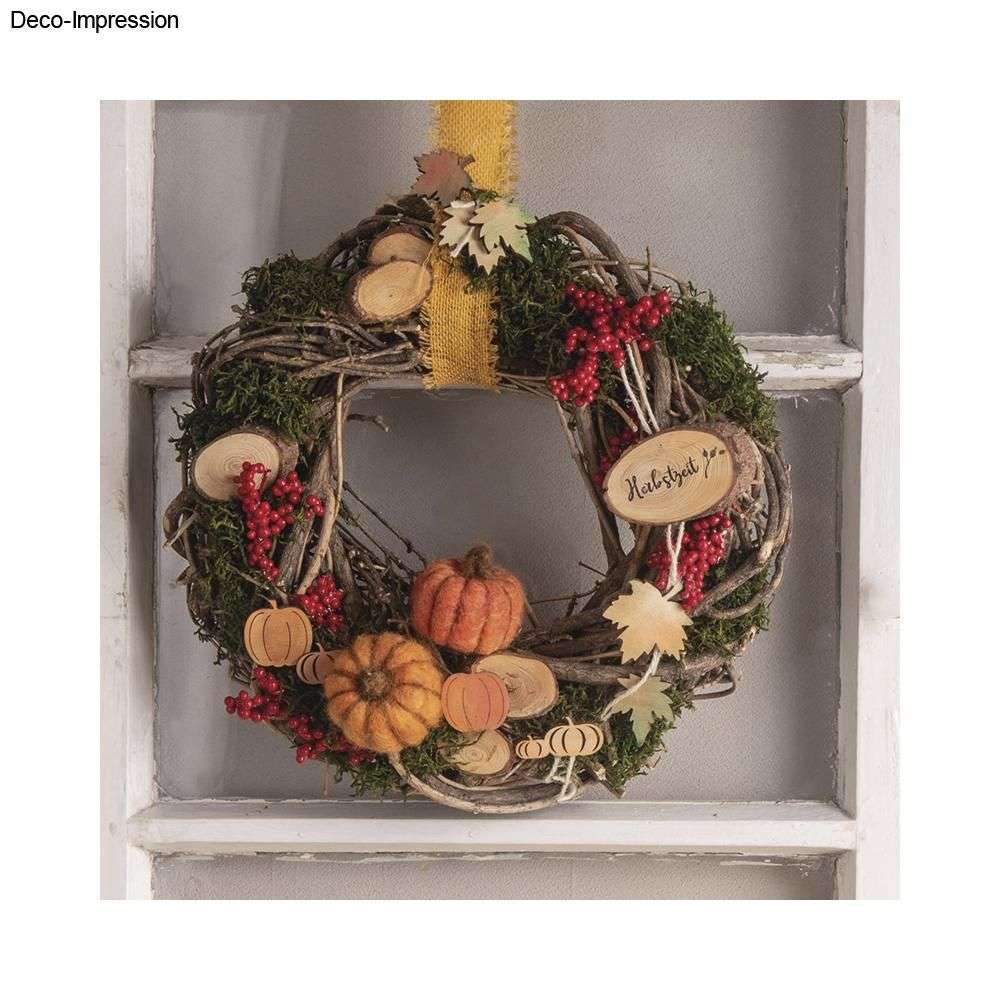 Der runde Kranz mit ø 30 cm und 5 cm Stärke besteht aus schönen Naturreben und kann je nach... mehr