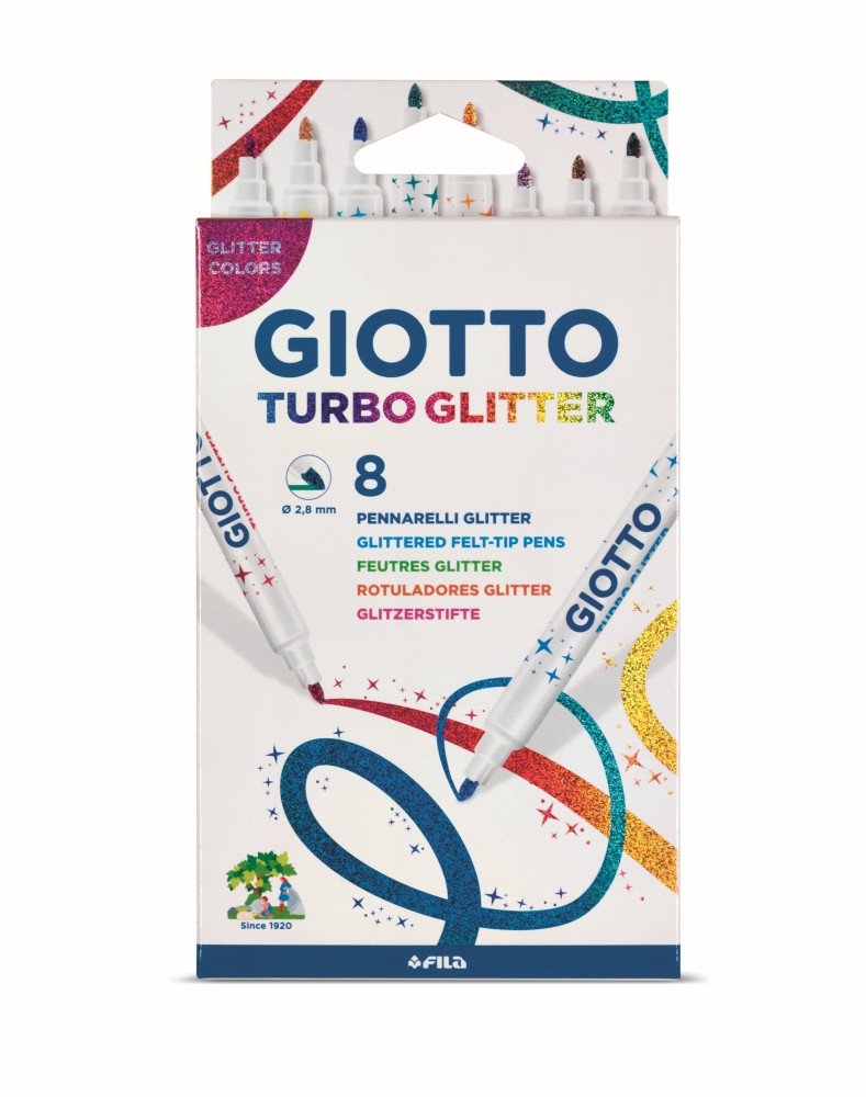 Die GIOTTO Turbo Glitter-Stifte sind die perfekte Möglichkeit, um glitzernde Zeichnungen zu erstellen. Die GIOTTO Filzstifte sind ideal für Kreative, die ihrem Kunstwerk einen dauerhaften Glanz verleihen wollen. Damit eignen sie sich perfekt zum Verzieren von Grußkarten, für ein individuelles Tagebuch oder zum Verschönern von Übungsheften. Die hochwertigen Filzstifte gibt es in 8 verschiedenen Farben, die mit den funkelnden Augen der jungen Künstler um die Wette strahlen. Die Farben lassen sich einfach von den Händen und aus Kleidungsstücken waschen. GIOTTO Turbo Glitter Filzstifte sind mit einer ventilierten Sicherheitskappe ausgestattet und überzeugen mit ihrer festsitzenden, stoßsicheren Spitze - perfekt für jüngere Künstler, die ihrer Kreativität freien Lauf lassen möchten!