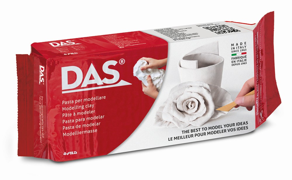 Von Flachreliefs über Skulpturen bis zu aufwendigen Mosaiken: die DAS Modelliermasse wird seit 1963 für eine Vielzahl von kreativen Vorhaben genutzt und gehört zum Basis-Equipment eines jeden Schülers und DIY-Liebhabers. Die DAS Modelliermasse ist einfach zu bearbeiten und kann zu festen, faszinierenden Objekten geformt werden, die anschließend mit Farben oder geeigneten Markern kreativ gestaltet werden können. Die Modelliermasse eignet sich besonders für die Beschichtung von Materialien wie Holz, Metall oder Glas. Die Modelliermasse härtet an der Luft aus, sodass sie nicht im Ofen gebrannt werden muss. Auch im trockenen Zustand lässt sich die Modelliermasse durch Feilen, Polieren und Schleifen flexibel bearbeiten. Die DAS Modelliermasse ist in jeder Hinsicht unbedenklich: sie basiert auf natürlichen Stoffen, ist glutenfrei und dermatologisch getestet. Sie hinterlässt keine Flecken und lässt sich leicht von den Händen waschen.