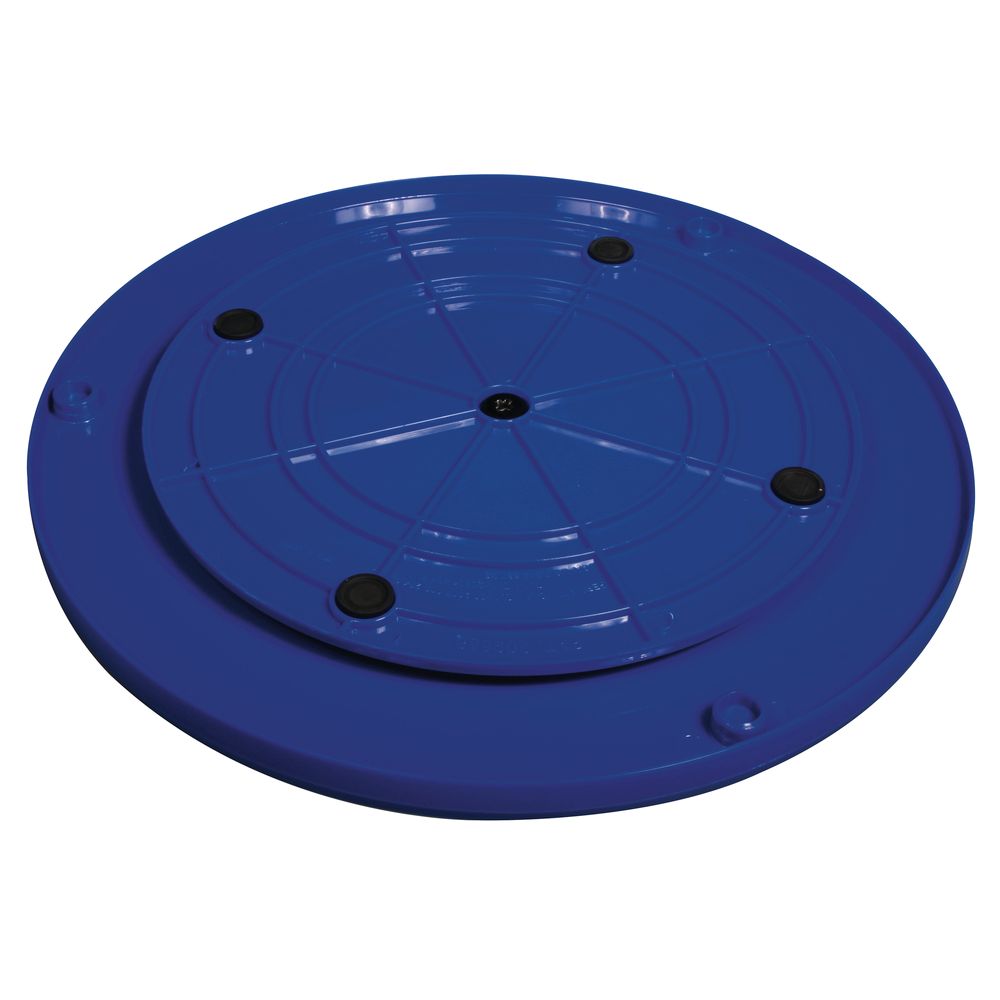 Mit dieser tollen Drehscheibe kannst du deine kreativen Werke in alle Richtungen drehen und perfekt bearbeiten. Durch die vier Gummifüße an der Unterseite hat sie einen stabilen Stand und du musst keine Angst haben, dass sie beim Bearbeiten deiner Kunstwerke verrutscht. Die drei Aussparungen am Rand ermöglichen dir, die Scheibe gleichmäßig und ohne absetzen zu drehen. Die blaue Drehscheibe hat einen Durchmesser von 27 cm, besteht aus Kunststoff und ist dank der glatten Oberfläche unempfindlich und einfach zu reinigen.
