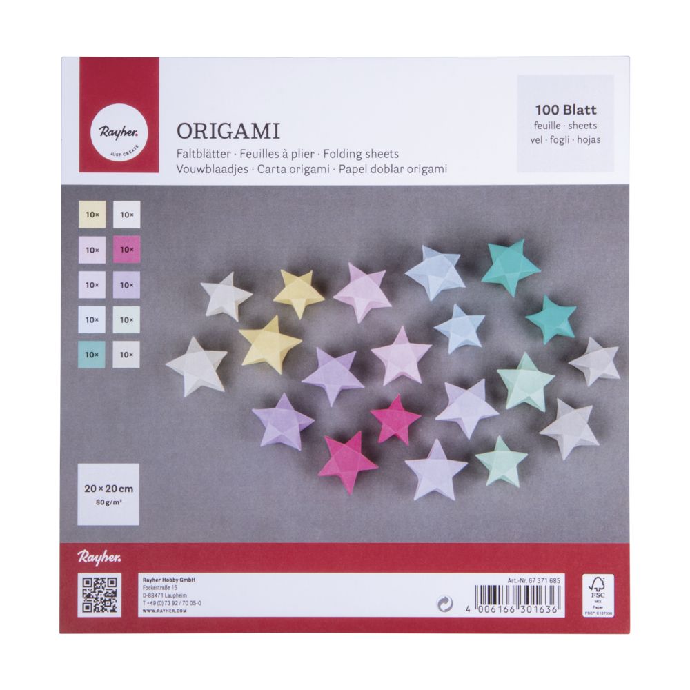 Das Papier hat die ideale Faltstärke, reißt dabei aber nicht sehr schnell. Durch Falten der quadratischen Blätter entstehen die schönsten Kunstwerke, von ganz einfach bis sehr anspruchsvoll. Das Papier ist FSC zertifiziert, ein internationales Zertifizierungssystem für nachhaltigere Waldwirtschaft. Es kommt aus Wäldern, die verantwortungsvoll bewirtschaftet werden.