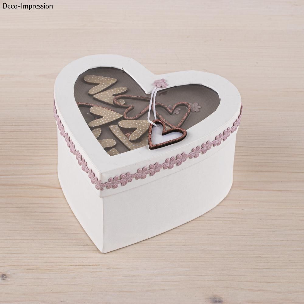 Die weiße Pappmachébox in Herzform hat eine Größe von 13 x 13 x 7 cm und ist mit einem speziellen... mehr