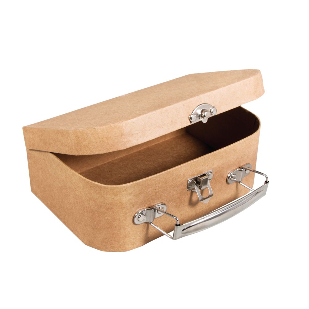 Geschenke originell verpackt - Kleinkram chic aufbewahrt ¿ Dekorationen raffiniert präsentiert! Die Pappmaché-Kofferbox aus FSC-zertifizierter nachhaltiger Waldwirtschaft ist mit einem Metallgriff und einem Schnappverschluss ausgestattet. Du kannst diese Box farbig bemalen, mit Stoff oder Papier kaschieren, schablonieren oder mit Accessoires, Bändern und vielem mehr dekorieren. Auch in Kombination mit Mini-Gardening ist der Pappmaché-Koffer der Hit!