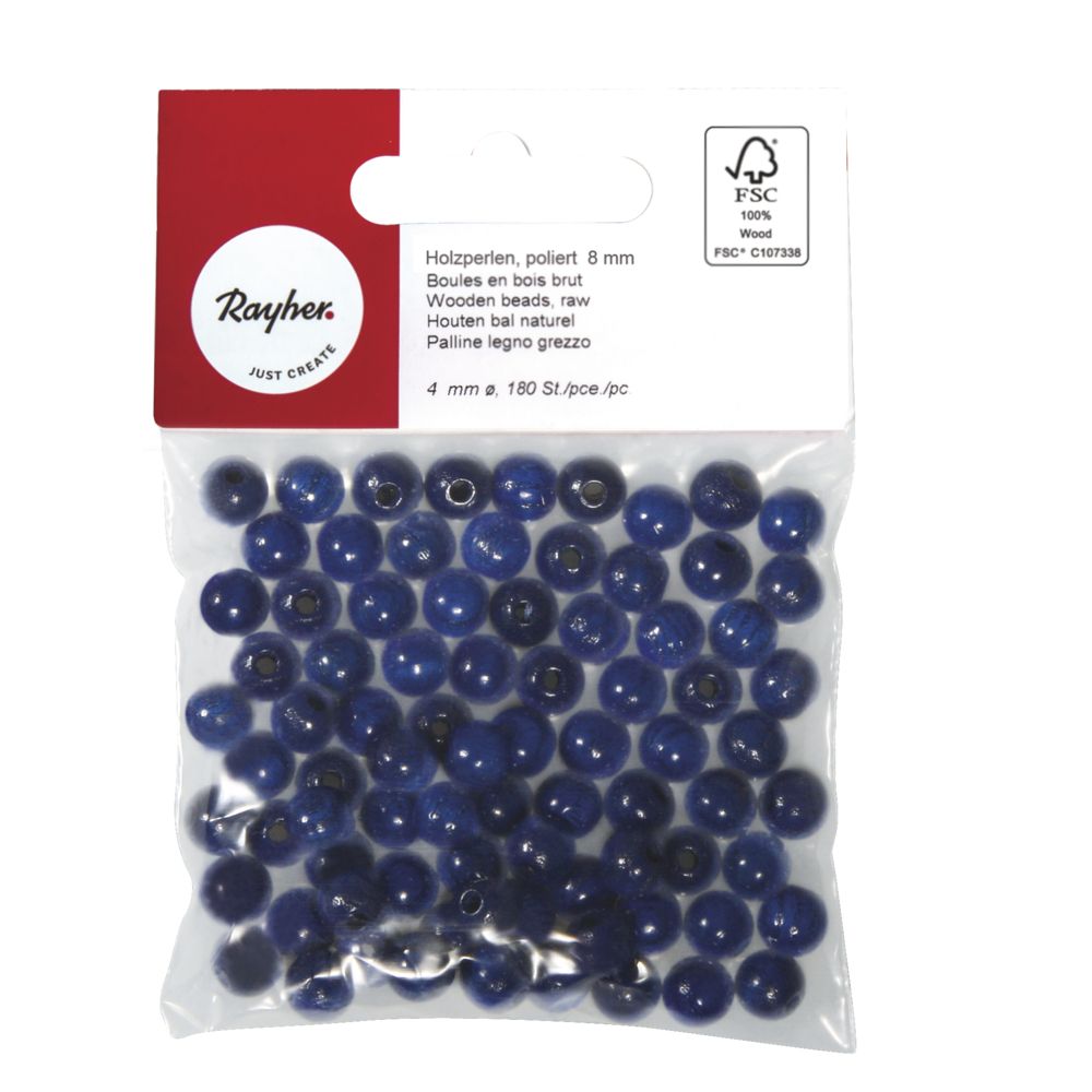 Farbige Holzperlen für kreativen Bastelspaß. Die 8 mm großen Holzperlen sind glänzend poliert, FSC-zertifiziert und in vielen bunten Farben erhältlich.