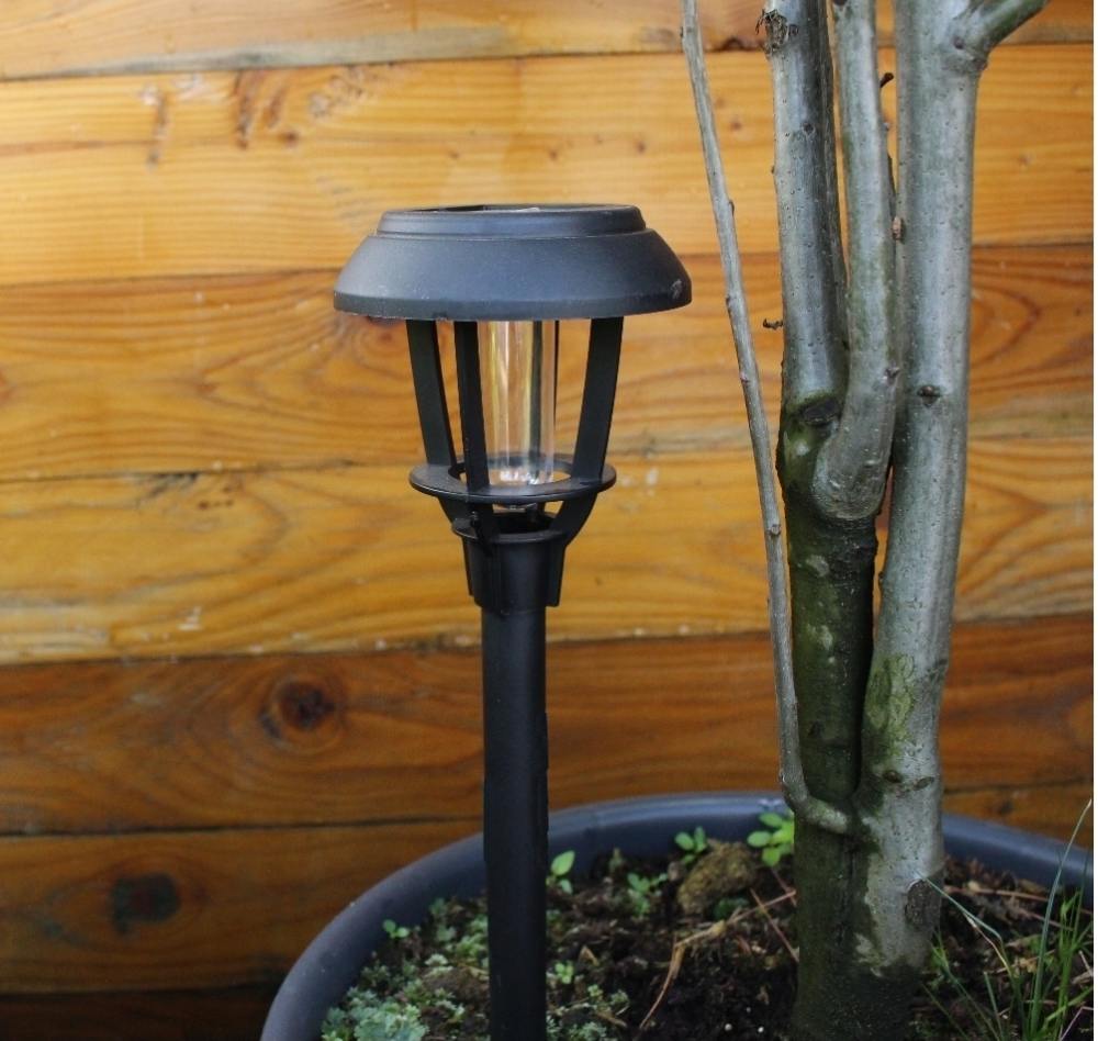 Die Casi Solarlampe sieht ganz klassisch aus und passt überall in den Garten. Das Glas ist hinter den Platik wie ein dicker Faden eingespannt. Der Deckel lässt sich abnehmen und die Solarleuchte kann mit einem Knoph ein und ausgeschaltet werden.