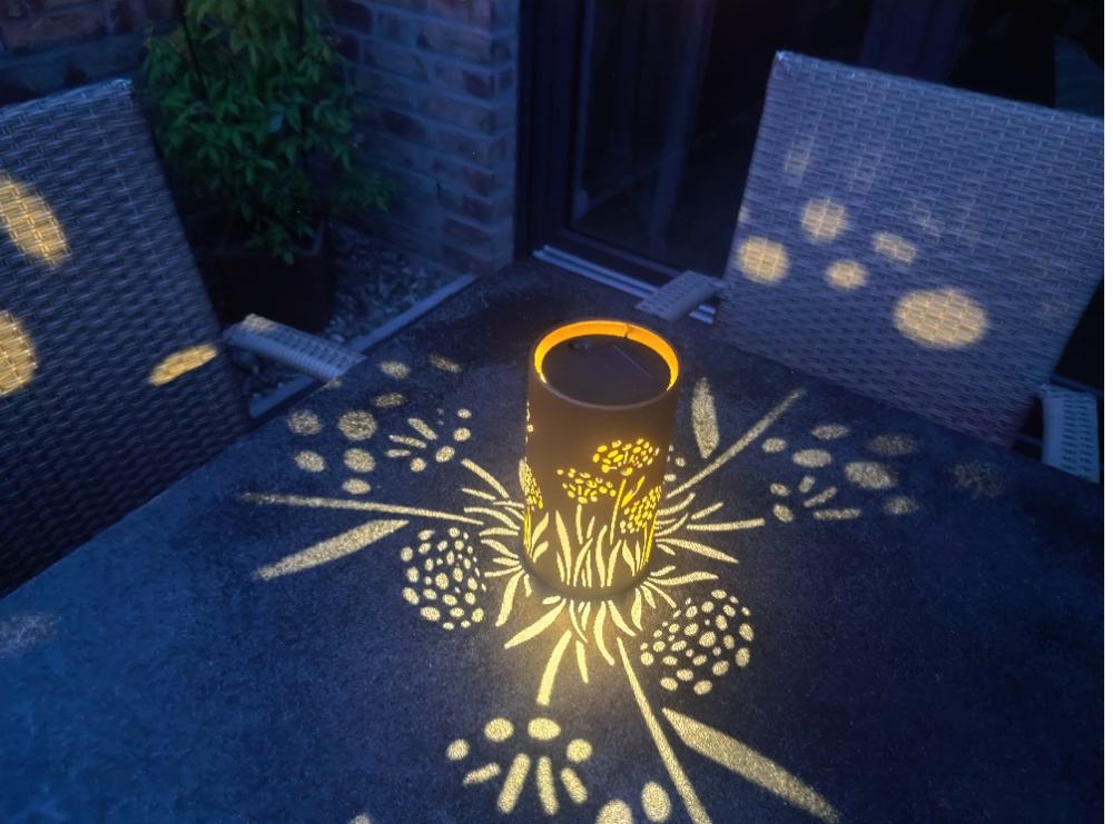 Lichter im Garten: Diese Lampe strahlt weit und mit wunterschönen Blumenmuster.