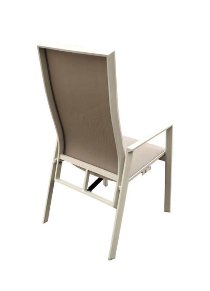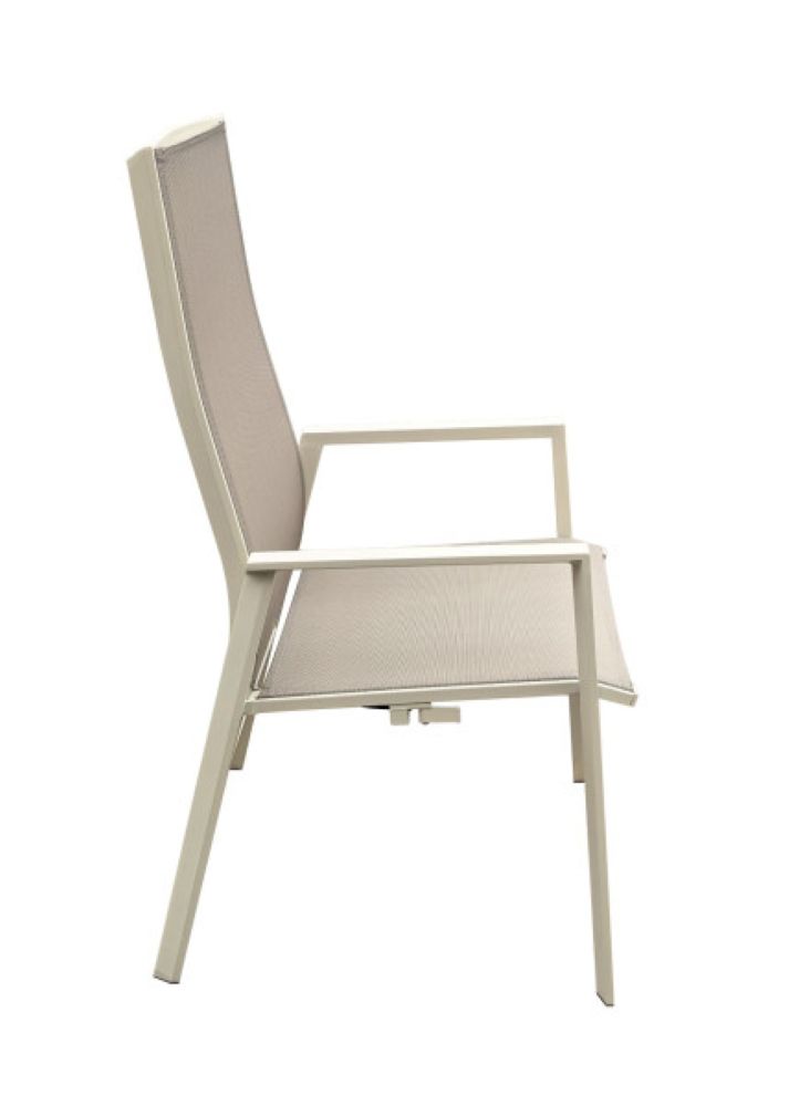 Ein Sessel, welcher nach hinten verstellbar ist. Dazu ist er leicht und lässt sich mit anderen Sesseln derselben Art leicht zu stapeln.