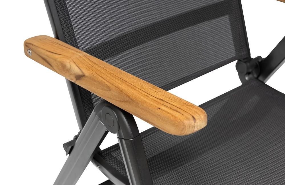 - Solides, formschönes Aluminium-Gestell mit FSC-zertifizierter Teak-Armlehne als Highlight