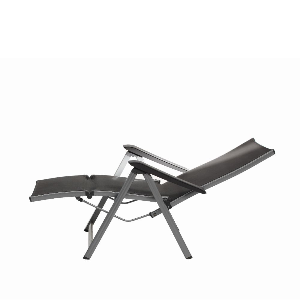 Relaxliege aus Aluminium mit wetterfester Textilener Bespannung. Klappbar zum platzsparendem verstauen.