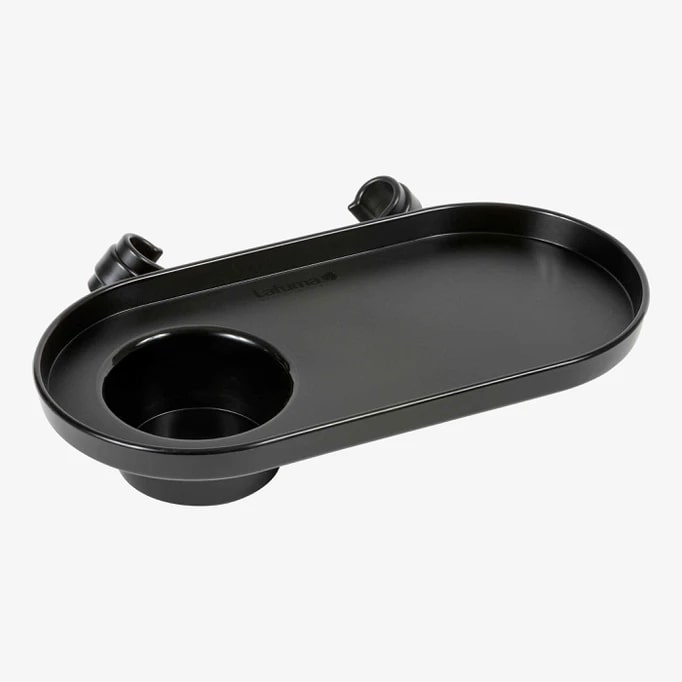 Dieses Abstelltablett mit Getränkehalter ist das unersetzliche Accessoire für eine in Reichweite gehaltene Erfrischung.