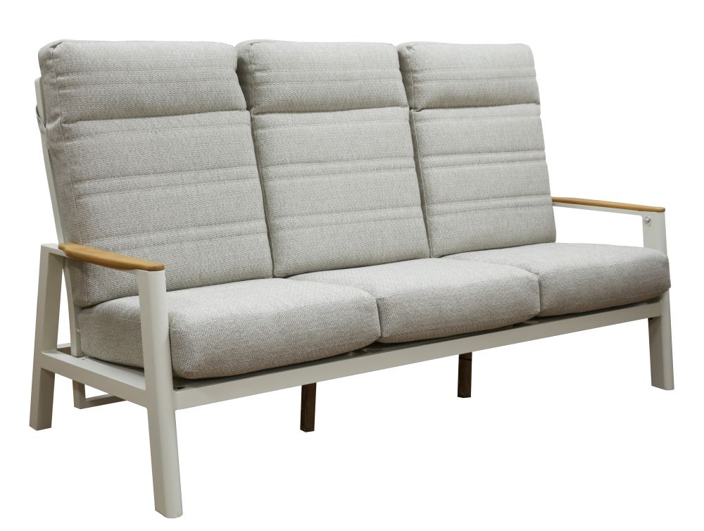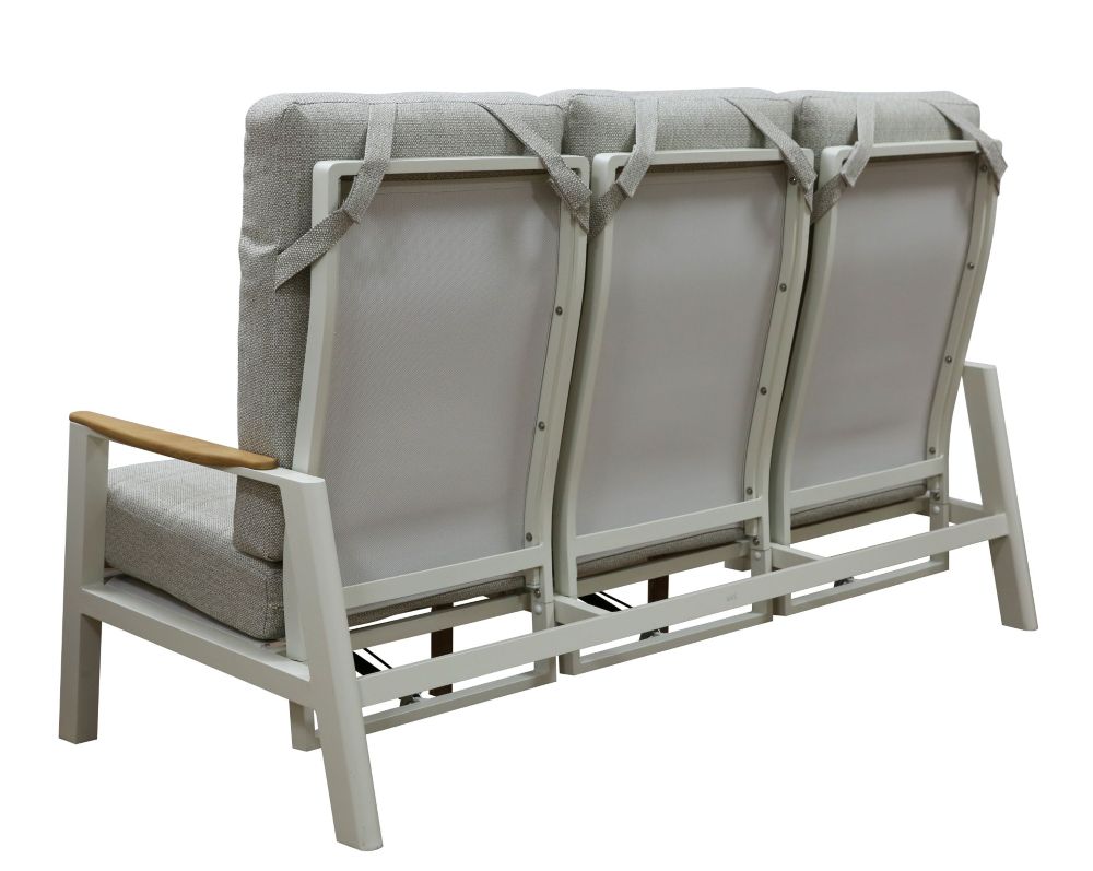 Dieses Loungesofa bietet nicht nur drei bequeme Sitzplätze, sondern es lässt sich auch verstellen, sodass eine leichte Liegefläche entsteht. So lässt es sich in der grünen Oase, egal ob Garten oder Terrasse, ideal entspannen!