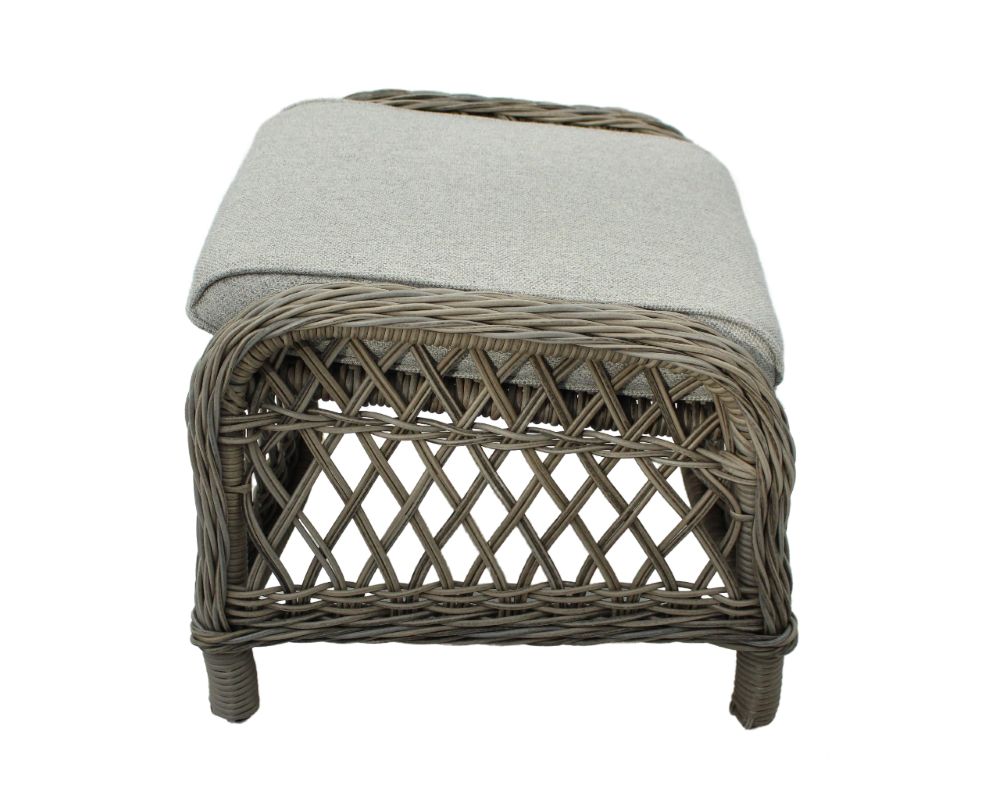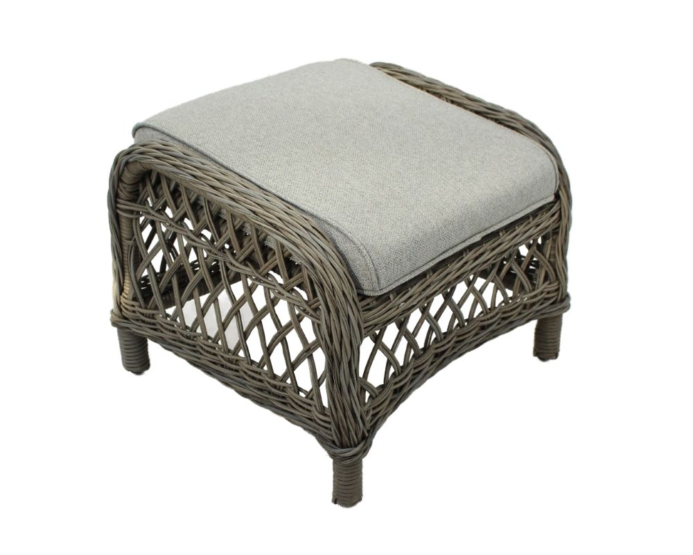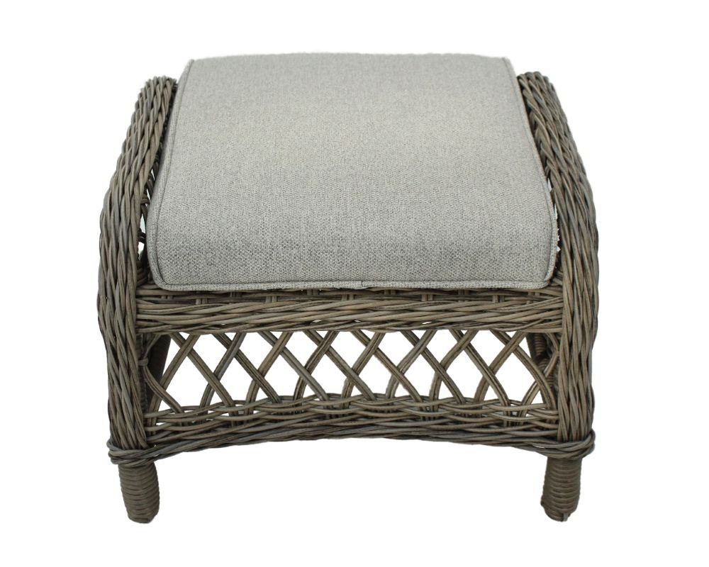 Dieser Hocker besteht im Untergestell aus handgeflochtenem Polyrattan. Des Weiteren besteht der Unterbau aus rostfreiem Aluminium und ist somit ideal für den Außenbereich geeignet. Außerdem ist das Polyrattan witterungsbeständig und pflegeleicht, zusätzlich können Sie Ihre Möbel mit der passenden atmungsaktiven Schutzhülle von Aerocover vor Witterungseinflüssen und Verschmutzungen schützen. Die Korbmöbel geben Ihrer Terrasse eine wohnliche und gemütliche Atmosphäre. Das Kissen ist enthalten und kann bei Bedarf gewaschen werden. Maße: L 51 x B 50 x H 37 cm