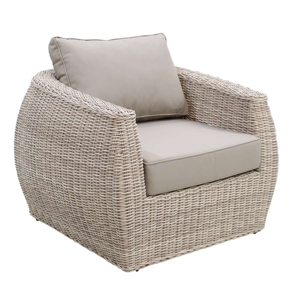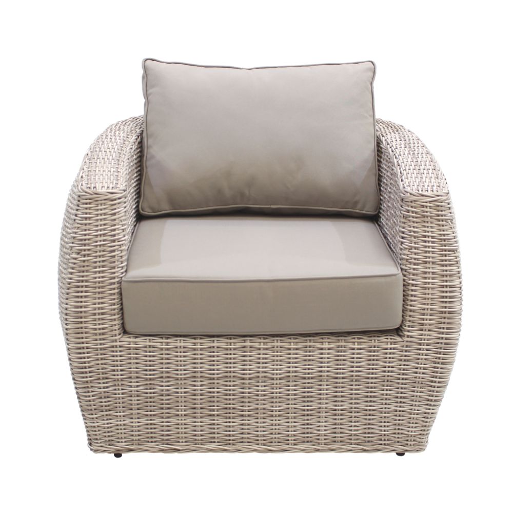 Sessel aus Aluminium mit wetterfestem Kunststoffgeflecht inkl. Sitzkissen.