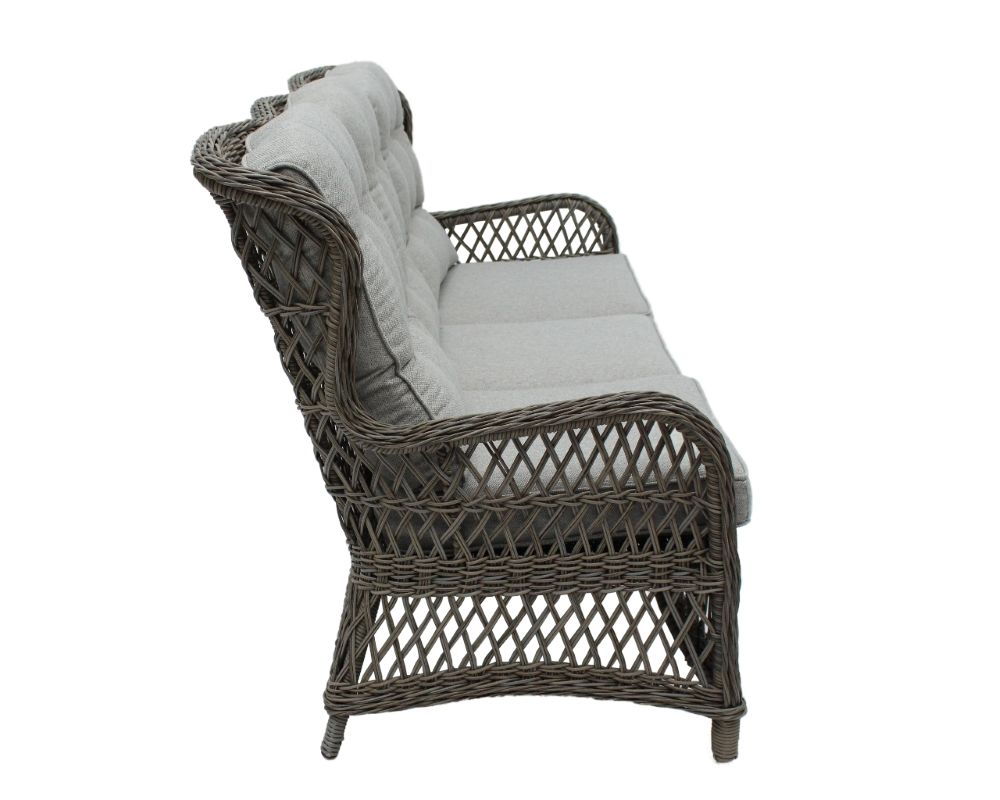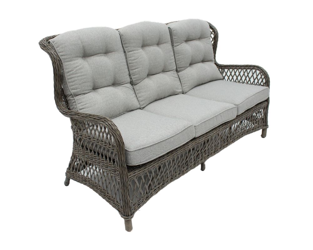 Dieses Sofa besteht im Untergestell aus handgeflochtenem Polyrattan. Des Weiteren besteht der Unterbau aus rostfreiem Aluminium und ist somit ideal für den Außenbereich geeignet. Außerdem ist das Polyrattan witterungsbeständig und pflegeleicht, zusätzlich können Sie Ihre Möbel mit der passenden atmungsaktiven Schutzhülle von Aerocover vor Witterungseinflüssen und Verschmutzungen schützen. Die Korbmöbel geben Ihrer Terrasse eine wohnliche und gemütliche Atmosphäre. Die Kissen sind enthalten und können bei Bedarf gewaschen werden. Maße: L 167 x B 63 x H 104 cm