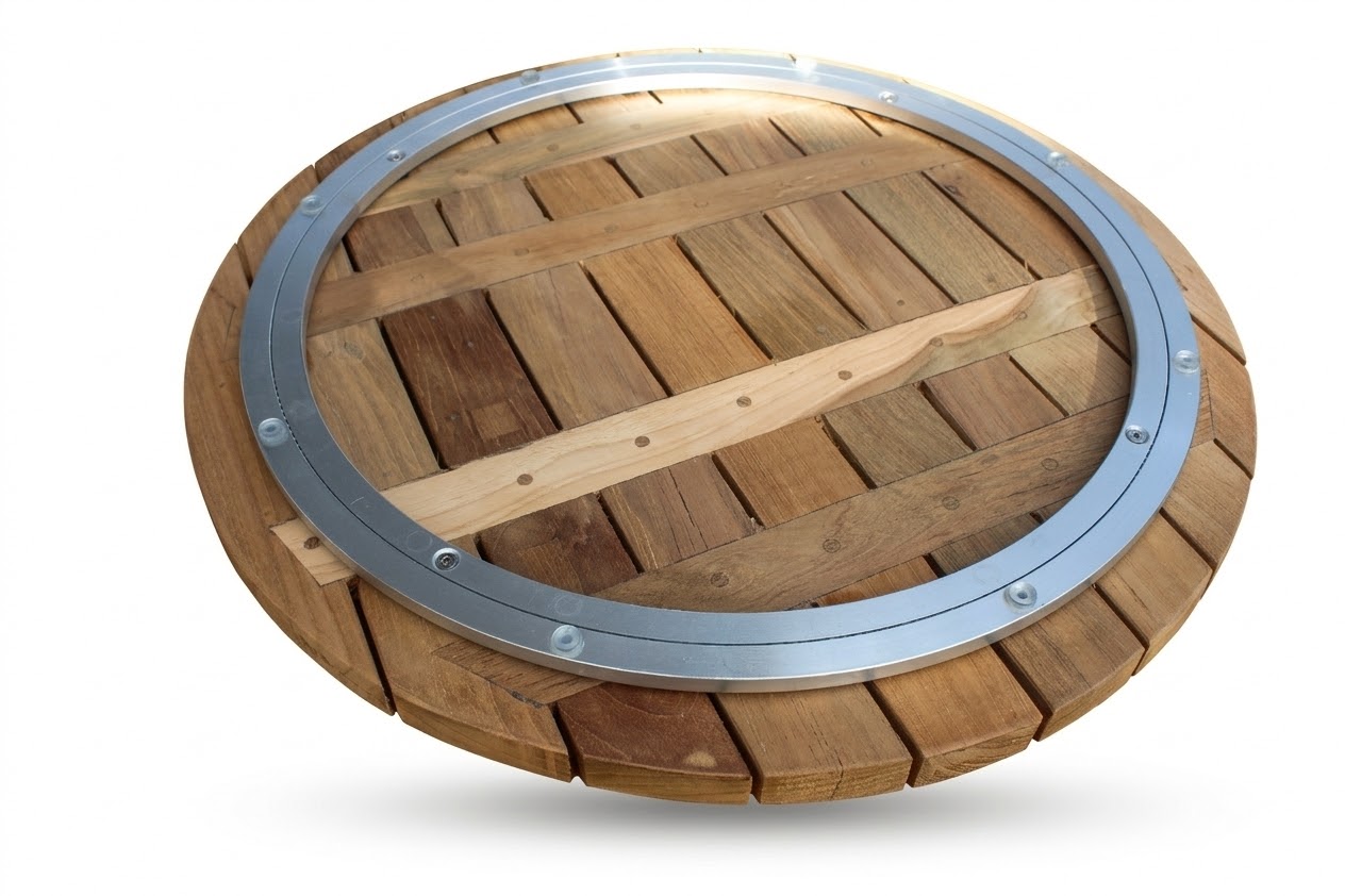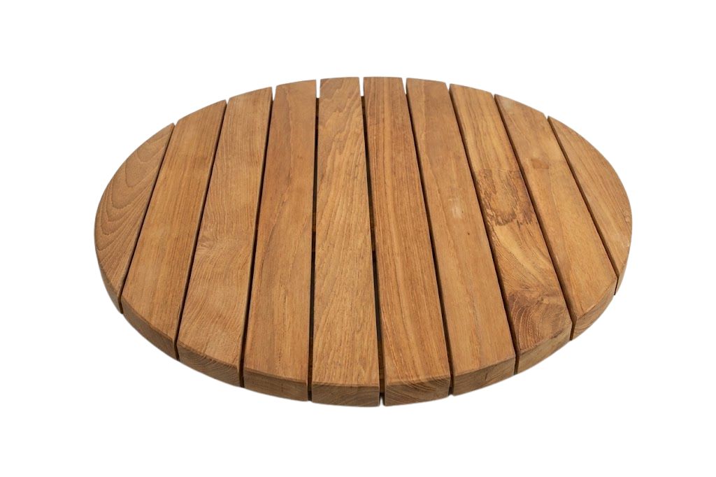 Klein aber praktisch: Die Teakplatte kann auf einen Tisch gelegt werden. Dekorativ und drehbar.