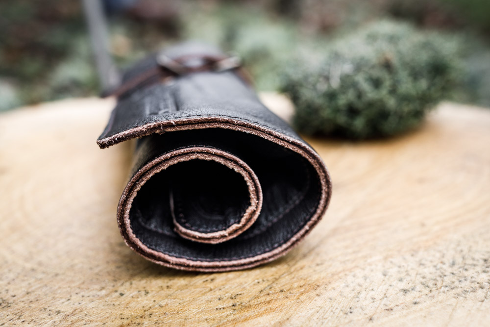 - Praktisch aufbewahrt: zusammenrollbare Bestecktasche aus Leder für das Petromax Camping Besteck