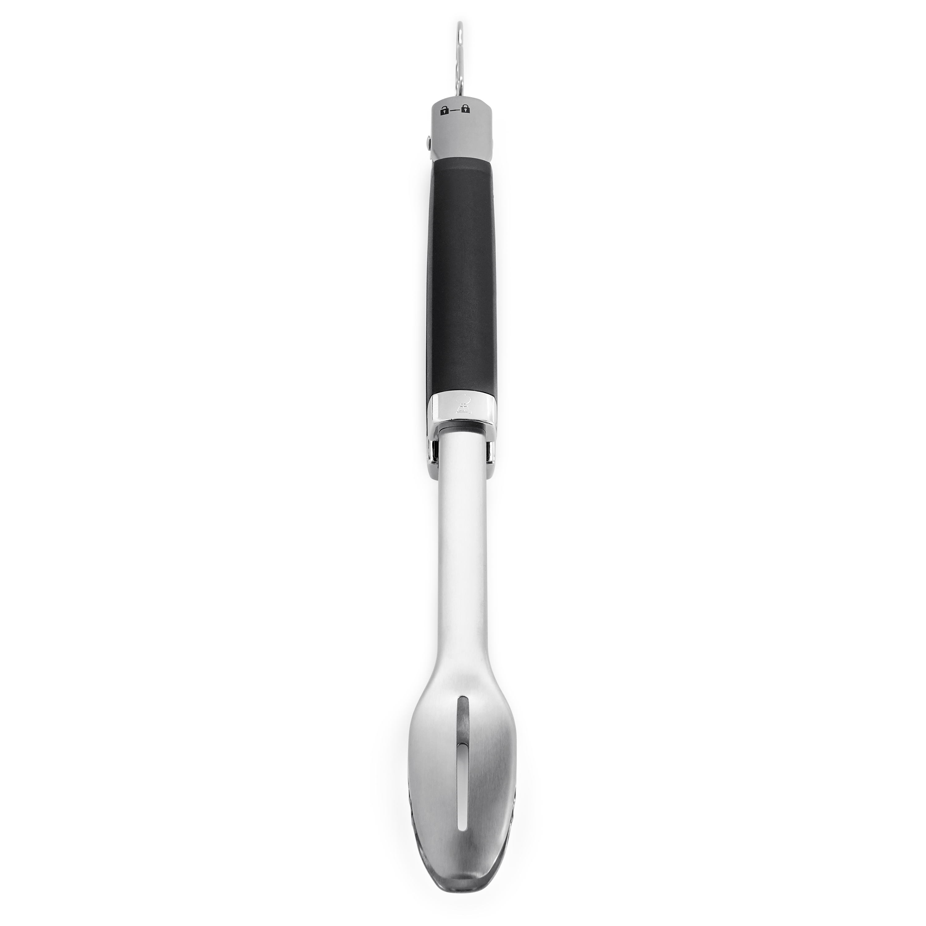 Aus Edelstahl mit schwarzen Anti-Rutsch-Griffen. Praktisches Verschlusssystem. Design mit flacher Vorderkante für mehr Präzision. Spülmaschinenfest. Länge: 46 cm