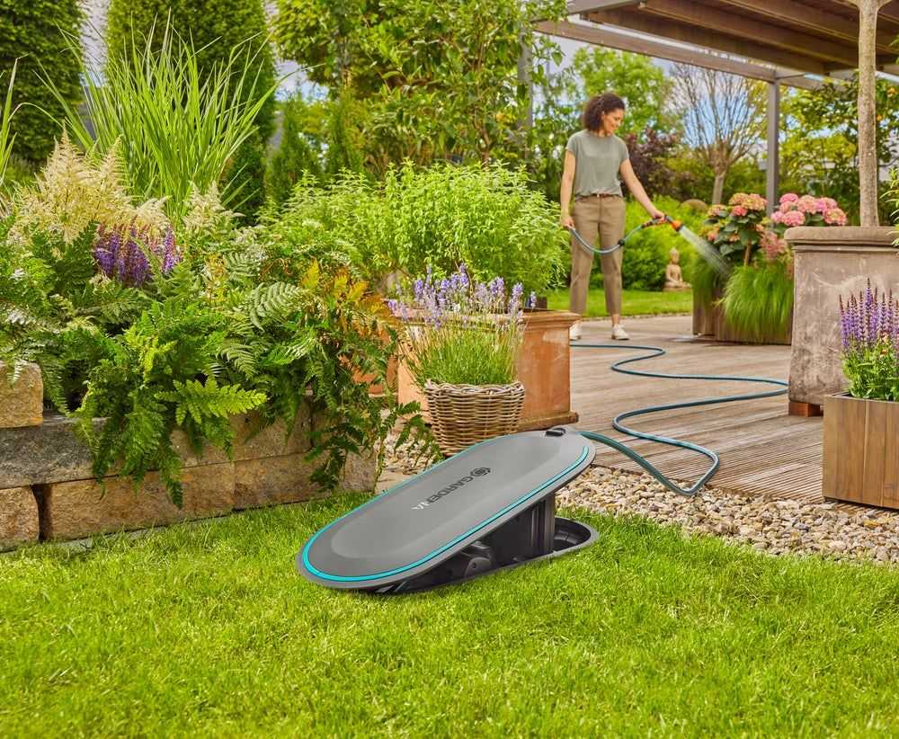 - Drei Anschlussoptionen: direkt am Wasserhahn, mit Schlauch im Garten oder als Teil der GARDENA Pipeline