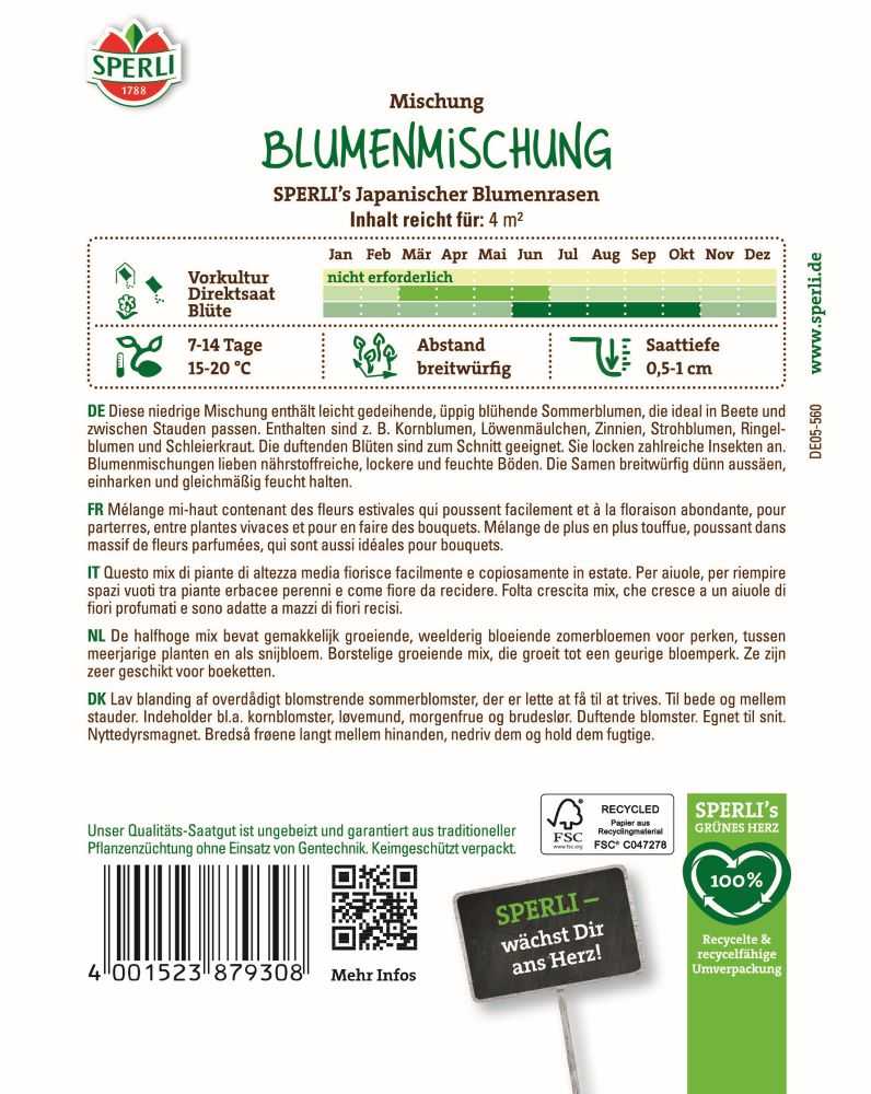 Herstellerinformation zu "Sperli Blumensamen-Mischung, Japanischer Blumenrasen"