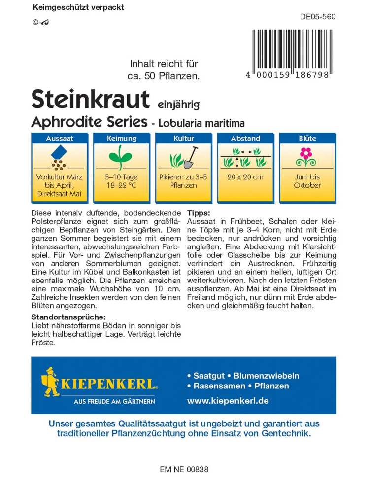 Herstellerinformation zu "Kiepenkerl Steinkrautsamen Aphrodite Series"