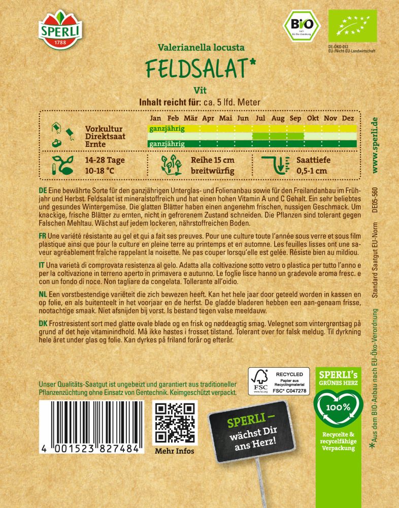 Herstellerinformation zu "Sperli BIO Feldsalatsamen"