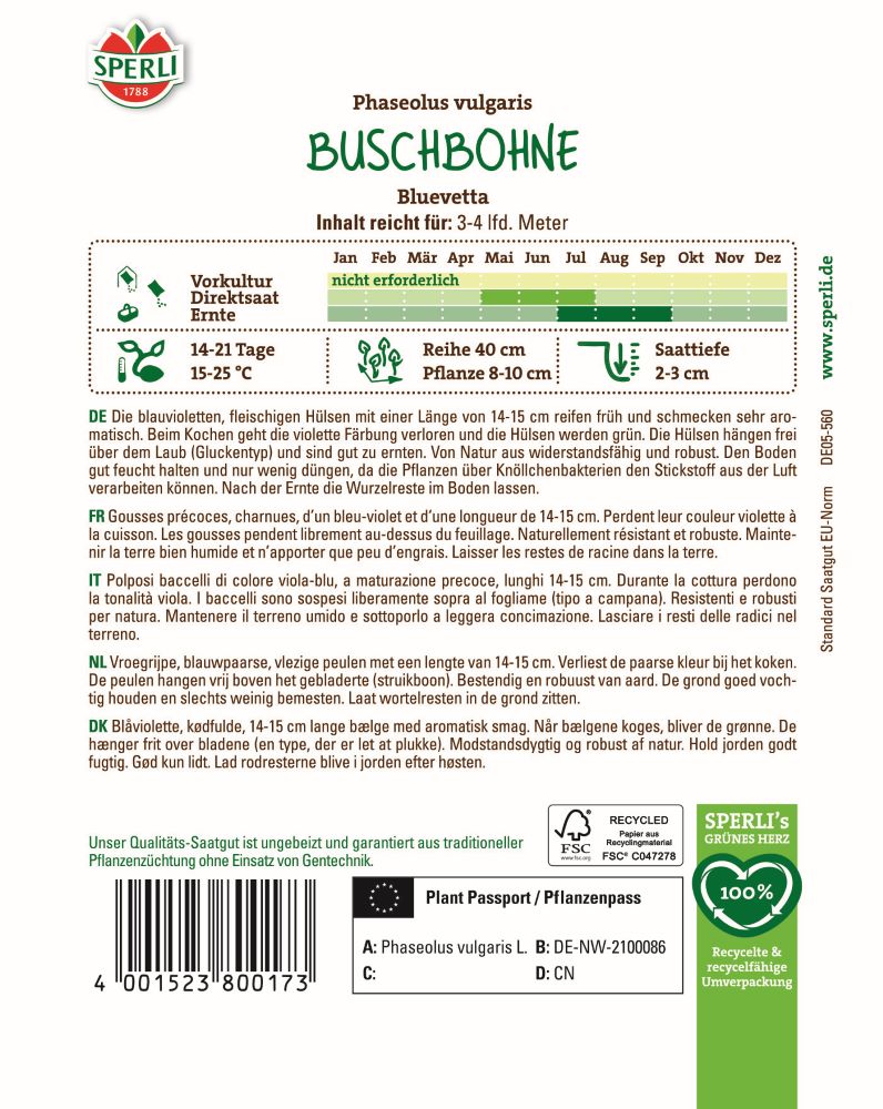Herstellerinformation zu "Sperli Buschbohnensamen Bluevetta"