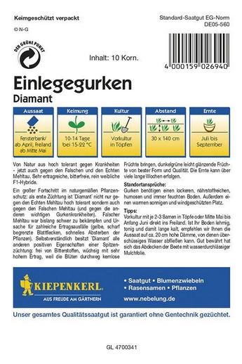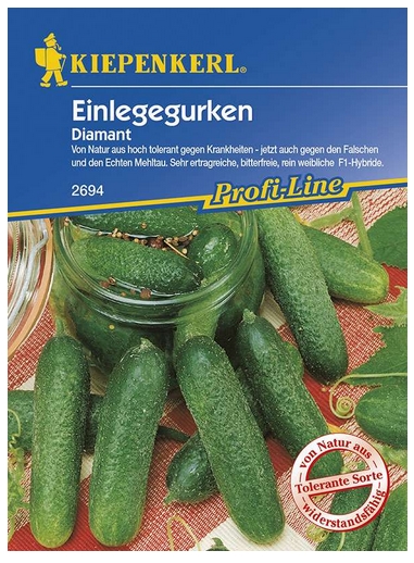 Eine Gurke, die für ihre vielen Resistenzen bekannt ist, ist die Einlegegurke 'Diamant, F1'. Diese köstliche Gurke ist resistent gegen Falschen und Echten Mehltau. Zudem hat sie auch eine Widerstandsfähigkeit gegen alle anderen häufig auftretenden Gurkenkrankheiten.