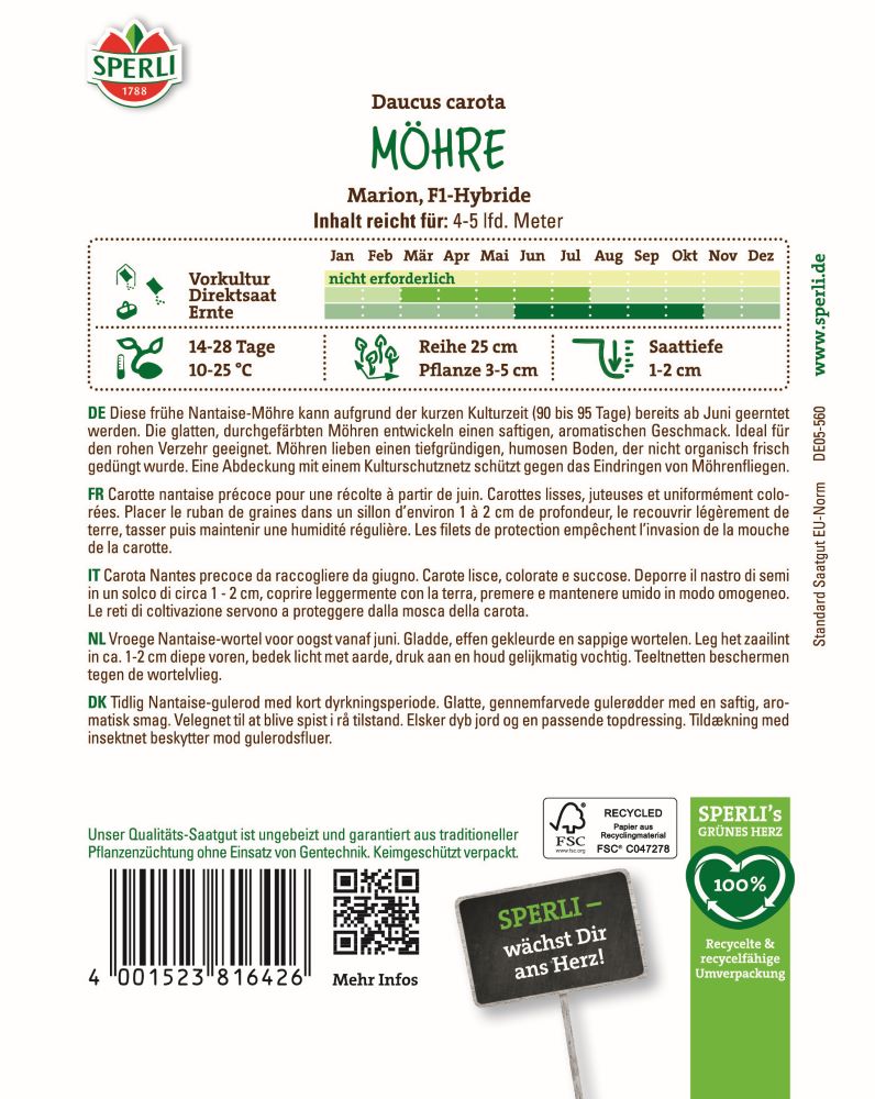 Herstellerinformation zu "Sperli Möhrensamen Marion, F1"