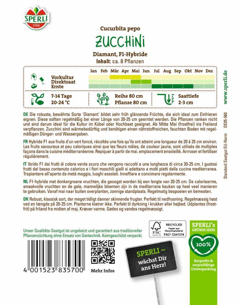 Herstellerinformation zu "Sperli Zucchinisamen Diamant, F1"