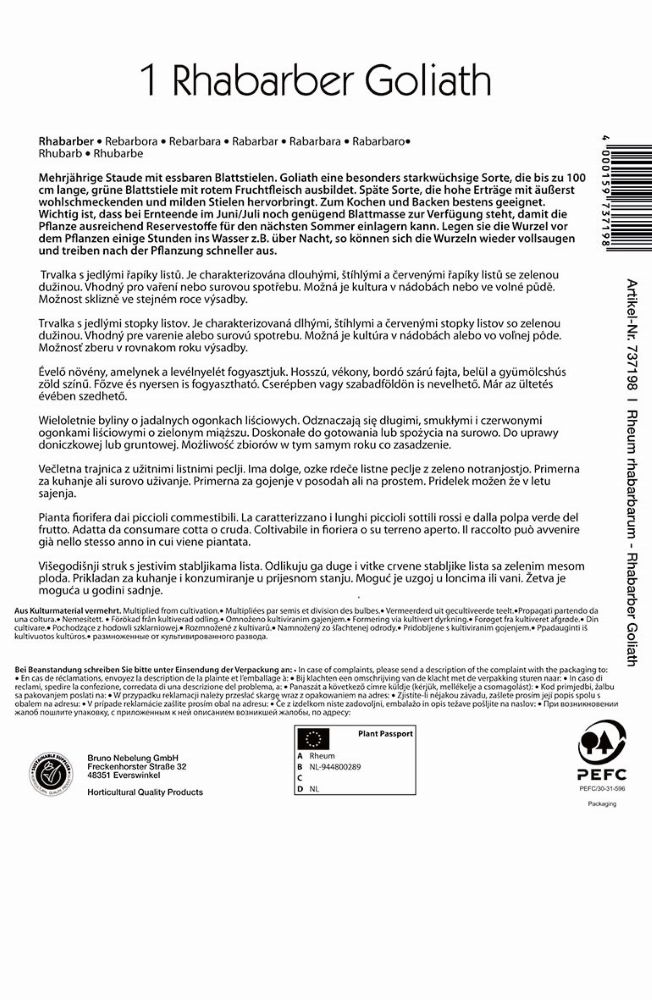 Herstellerinformation zu "Rhabarber Goliath Rheum rhabarbarum 1 Stück"