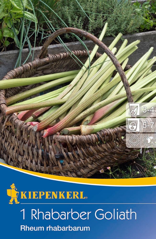 Goliath eine besonders starkwüchsige Sorte, die bis zu 100 cm lange, grüne Blattstiele mit rotem Fruchtfleisch ausbildet. Späte Sorte, die hohe Erträge mit äußerst wohlschmeckenden und milden Stielen hervorbringt. Zum Kochen und Backen bestens geeignet. Wichtig ist, dass bei Ernteende im Juni/Juli noch genügend Blattmasse zur Verfügung steht, damit die Pflanze ausreichend Reservestoffe für den nächsten Sommer einlagern kann.