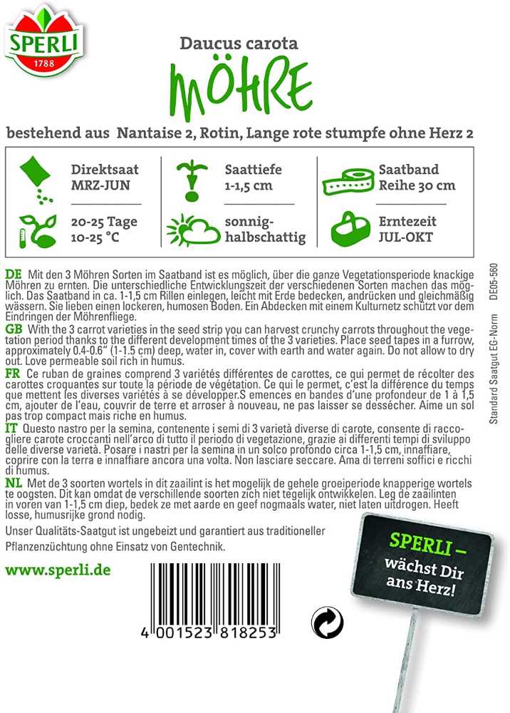 Herstellerinformation zu "Sperli Möhrensamen Sortiment, 3 Sorten, Saatband"