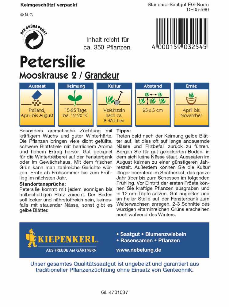 Herstellerinformation zu "Petersiliensamen Grandeur® (Moskrul 2)"